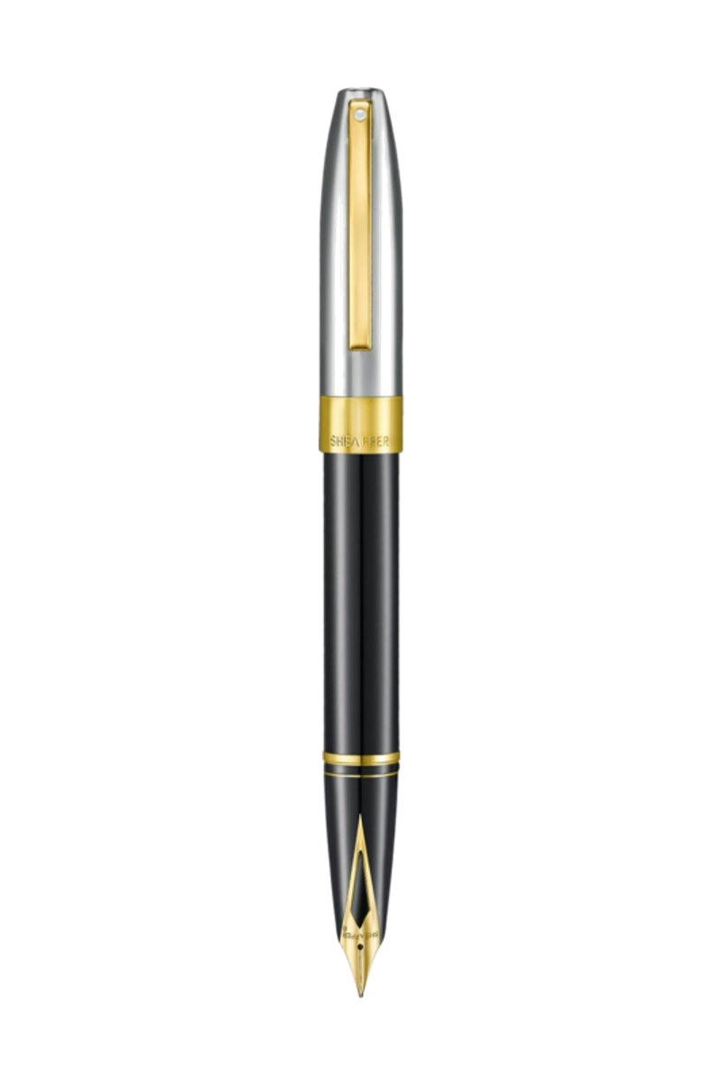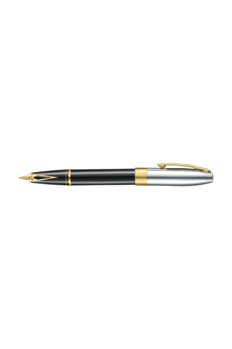 The Sheaffer Legacy stands as a tribute to the art of fine writing—a harmonious blend of heritage and modern refinement. Its signature stainless steel 14K PVD gold-plated inlaid nib, a hallmark of Sheaffer’s design innovation, is restored to perfection for today’s discerning writer. With every curve sculpted for balance and every detail crafted with care, the Legacy embodies timeless elegance and technical mastery—an icon reborn for those who write with purpose. Features: Black & chrome lacquer finished with stainless steel 14k PVD gold-plated trims Stainless steel 14k PVD gold-plated inlaid nib with custom brand marking Fitted with a Sheaffer classic converter Presented in a premium gift box with a leather pouch