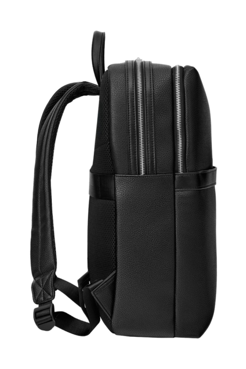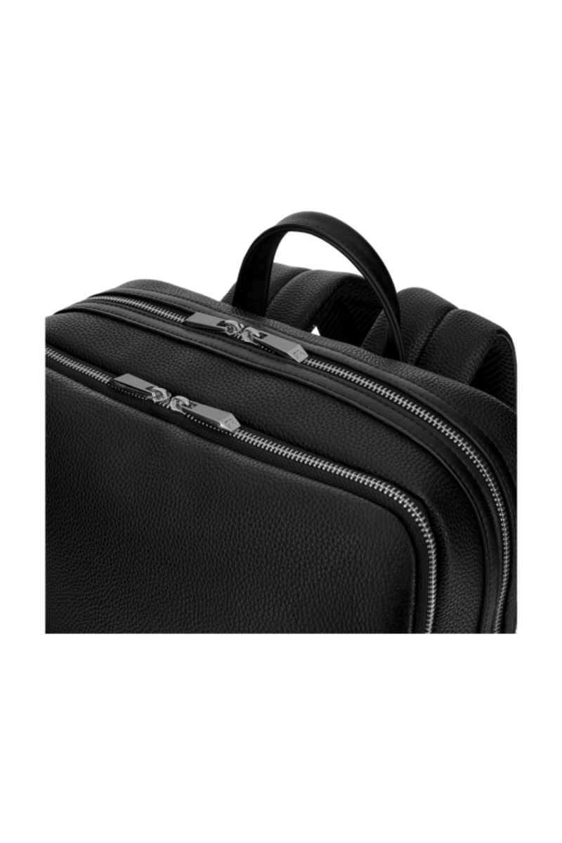 The Jefferson backpack in black with chrome trims brings a classical and elegant approach to both everyday use and travel. Its minimal rectangular shape is functional and exhaustive, offering perfect organisation through a carefully arranged interior. Crafted from a thoughtfully chosen matte-grained texture, it balances simplicity with luxurious detailing. The chrome metal trims highlight this refinement, featuring the new Cerruti 1881 plate celebrating the updated logo and the angular signature zipper pullers engraved with RR, adding a precise finishing touch. The monogramed lining enhances the refined feel, while the design includes a front zipped pocket for easy access, two distinct main compartments—one with a dedicated laptop section—and padded back and shoulder straps. A practical webbing strap at the back allows effortless placement on a trolley, completing this beautifully crafted, timeless accessory.