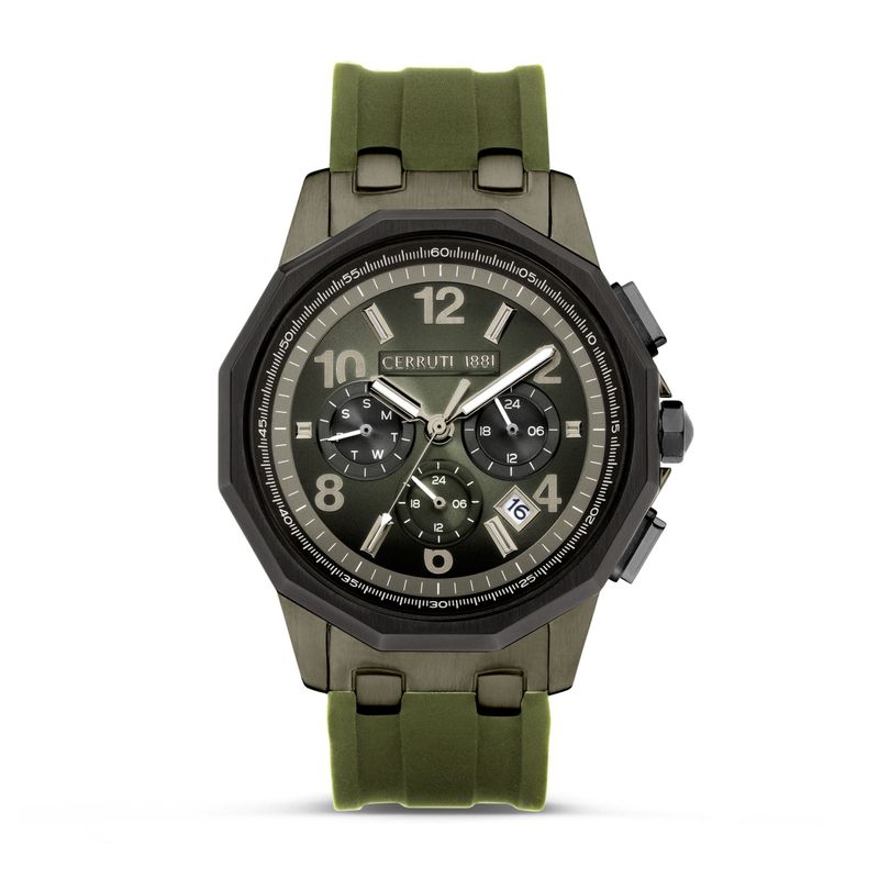 Elevate your style with the Function Watch Sport Molveno Clay Green by Cerruti 1881. Designed for the modern man, this multifunction watch features a striking clay green dial and a sturdy stainless steel case, all while ensuring exceptional durability with a 5 ATM water resistance. The sleek stainless steel band complements the bold color, making it perfect for both casual outings and formal occasions. Weighing just 105g, it’s lightweight and comfortable for all-day wear. Discover the perfect blend of sophistication and sportiness—this watch is a must-have accessory for any discerning gentleman.
