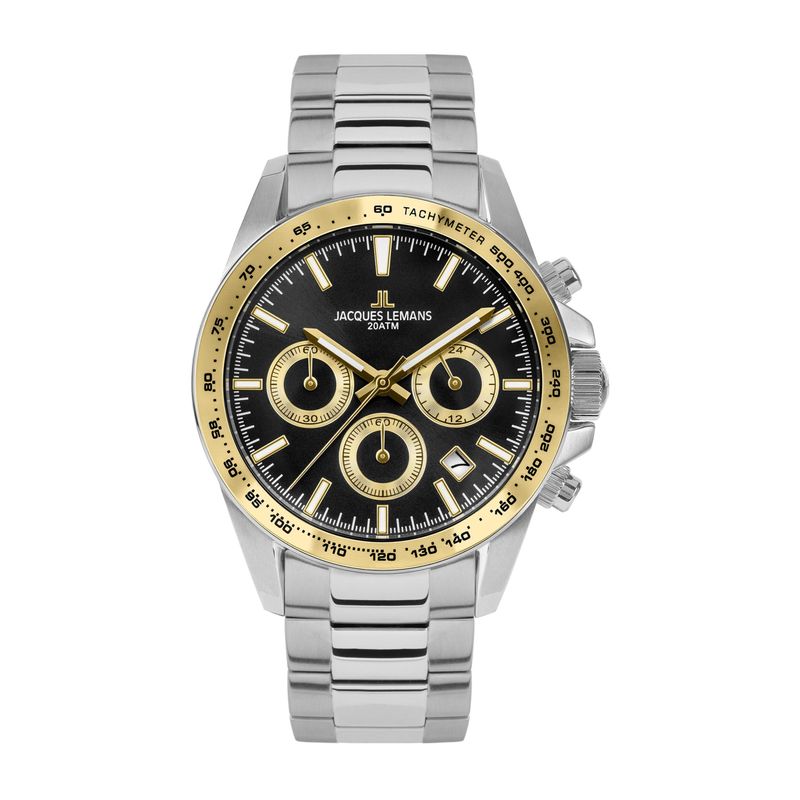 Elevate your style with the J.LEMANS Chronograph Liverpool Steel Gold, a perfect blend of sophistication and functionality. This striking stainless steel watch boasts a bold black dial and a robust 41mm case, designed with the modern man in mind. Featuring a water resistance of up to 20 ATM, it's perfect for any adventure. The comfortable 220mm stainless steel strap ensures an impeccable fit, while the precision TMI VD53C mechanism guarantees reliability. Whether at the office or on a night out, the Liverpool Steel Gold is your ultimate accessory for making a statement.