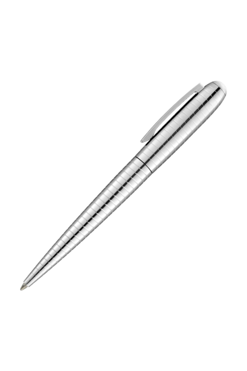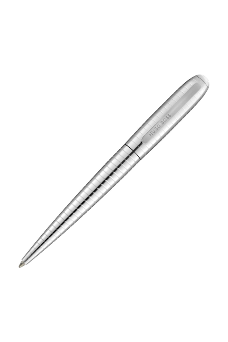 The Contour Bauhaus pen builds on the rounded, ogivoidal silhouette that has become a market favorite, with every line curved to create a fluid, seamless profile. Spaced horizontal lines bring an architectural, futuristic vibe, making the cap and barrel read as one continuous form. Plated in shiny finishes and signed with a HUGO BOSS logo on the clip, it comes in crisp chrome or deep, shiny black