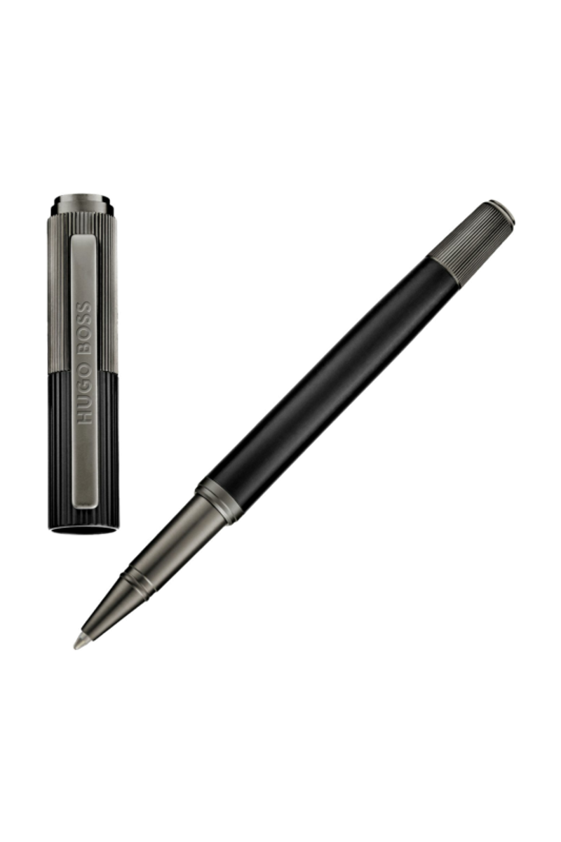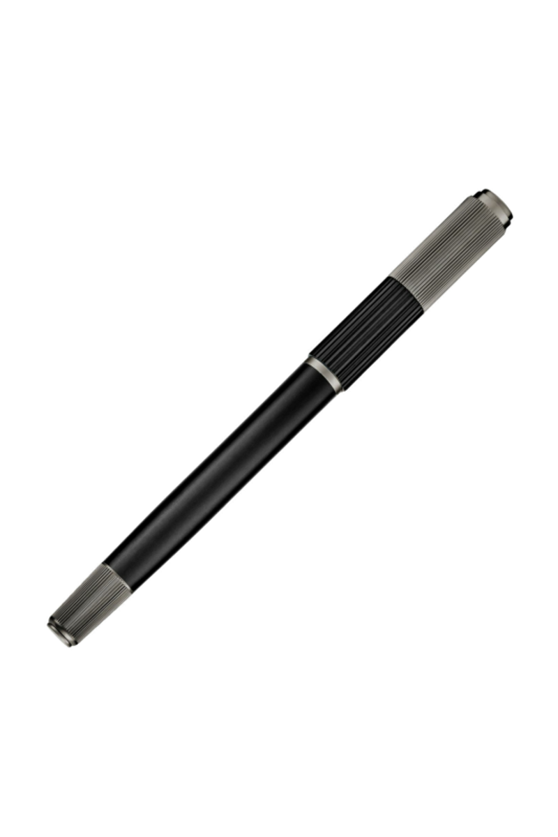 The Striade rollerball pen brings a refined twist to a classical silhouette, exploring the interplay of two pinstripe scales arranged across its cap. This contrast lends a subtle industrial spirit to the design, adding texture and character while preserving a minimal, balanced presence as a writing tool. Rendered in matte black with engraved gunmetal textures, it feels thoughtfully engineered, with a considered graphical detail that elevates its timeless form.