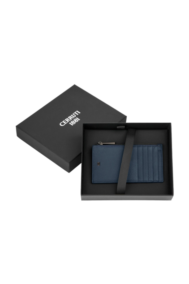 The CERRUTI 1881 Jefferson zipped card holder is compact and highly functional, offering five front card slots and a spacious gusseted zipped compartment that keeps essentials neatly organised within a slim silhouette. Made from carefully selected grained, best-quality leather, it delivers both durability and understated refinement. Elevated by its luxurious 1881-engraved zipper puller, the metal detailing adds depth and sophistication, while the miniature double R logo in gunmetal complements the elegant navy version with a subtle, contemporary character.