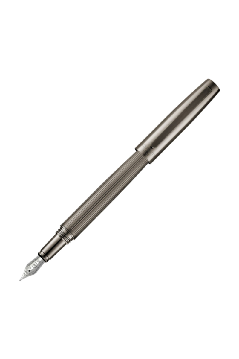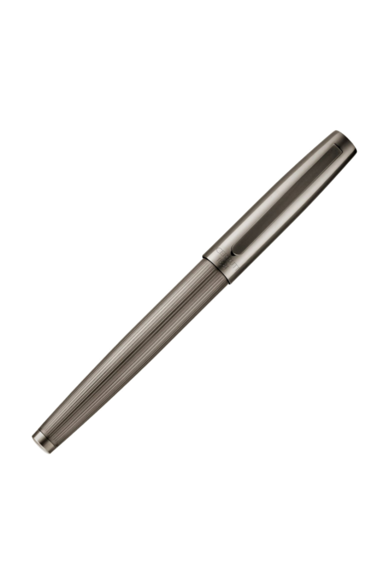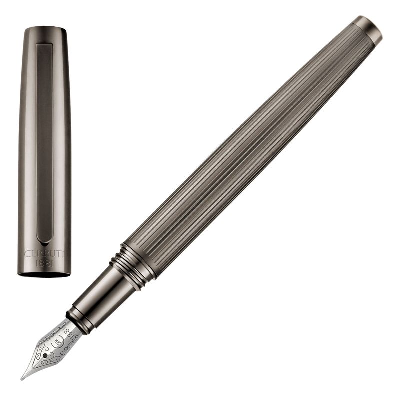 The Cerruti 1881 gunmetal fountain pen captures luxurious minimalism with a smooth cap engraved with the new two-row Cerruti 1881 logo and a pinstripe-engraved lower barrel. The deep gunmetal finish enhances its refined presence with a strong, modern character.