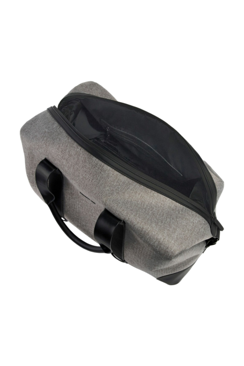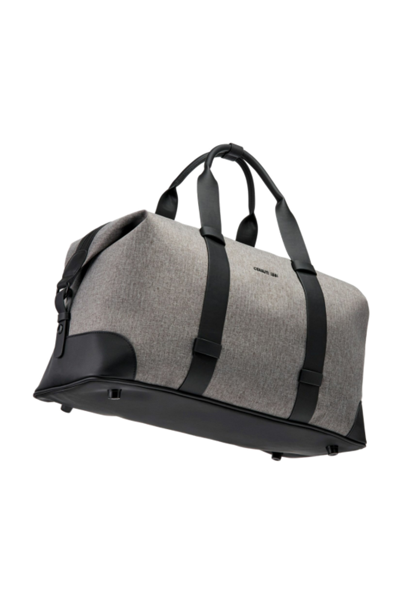 The Holborn weekend bag in light grey offers a perfect balance of timeless design and contemporary appeal. Crafted from innovative fabric with a finished texture, it features a minimal TPU logo signature and is mixed with matte black PU for a modern, masculine look. Inspired by suiting tradition but with a modern twist brought by its minimal shape, this bag is both functional and stylish. Spacious, light, and easy to carry, it is the ideal companion for weekend getaways and short trips. Signed with a sleek black logo, it adds a refined touch to your travel essentials.