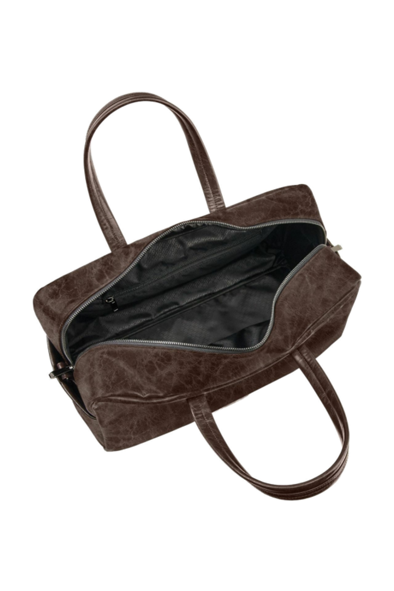 The Hudson is our most fashion-forward weekender bag, defined by beautifully textured, vintage-inspired surfaces in the deepest chocolate hue, luxuriously finished with gunmetal accents, from the Cerruti 1881 signature to the newly developed RR zippers. It offers a roamy yet compact volume, perfectly balanced for refined short stays and weekend escapes. Flat side pockets on each side add functional ease, while a front zipped pocket is adorned with the beautiful new signature puller. Inside, the tone-on-tone monogrammed lining reinforces the understated character of the design, completed with a practical zipped inner pocket for secure organisation.