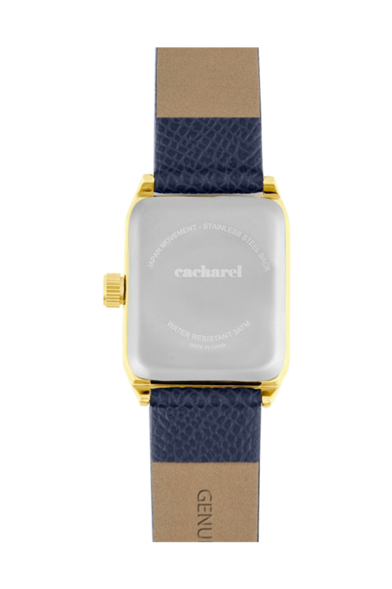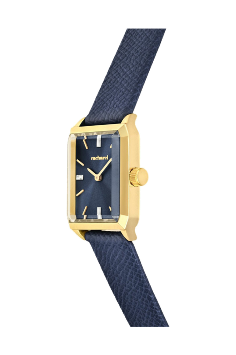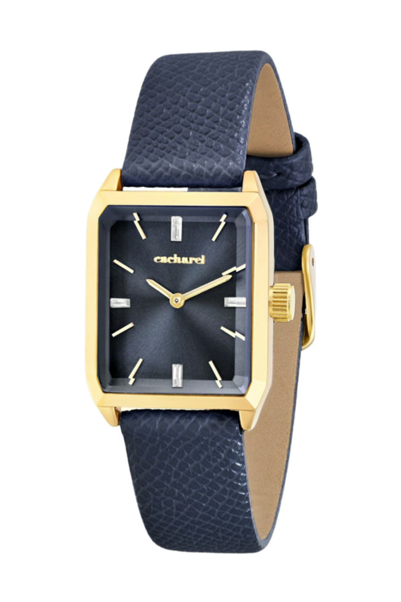 The Séraphine watch features an elegant Saffiano-finished bracelet and a perfectly proportioned angular case that feels refined and delicate without excess. The sunray-finished dial is accented with a small crystal detail, adding a subtle touch of light. Available in taupe, black, navy or light grey, it brings a timeless, graceful presence to any look.