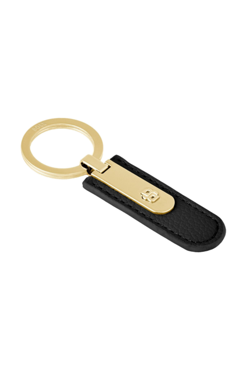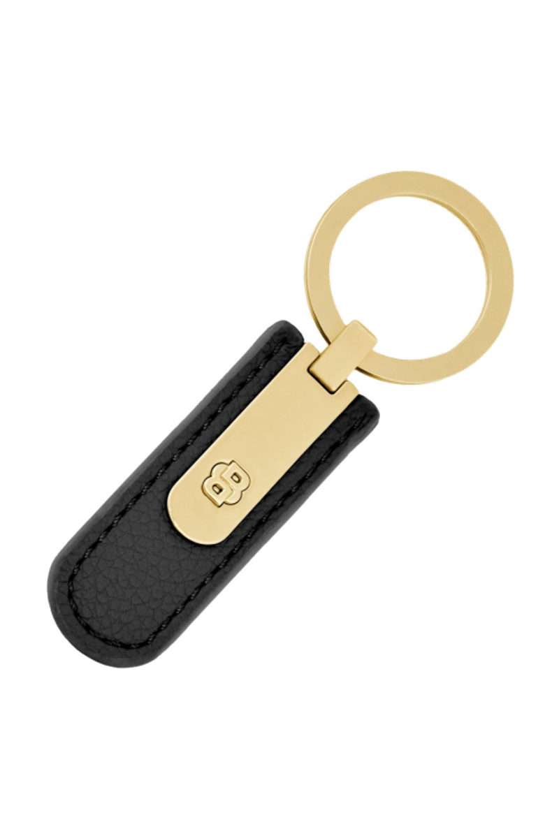 This keyring is crafted from carefully selected grained material and defined by a clean, minimal silhouette elevated with luxurious gold accents. A three-dimensional Double B signature emerges from the central band, creating a distinctive focal point, while the BOSS logo engraved on the ring completes the design with an understated signature. Offered in black, burgundy, taupe, nude, or lilac, it balances delicacy and refinement with a clear, modern BOSS touch.