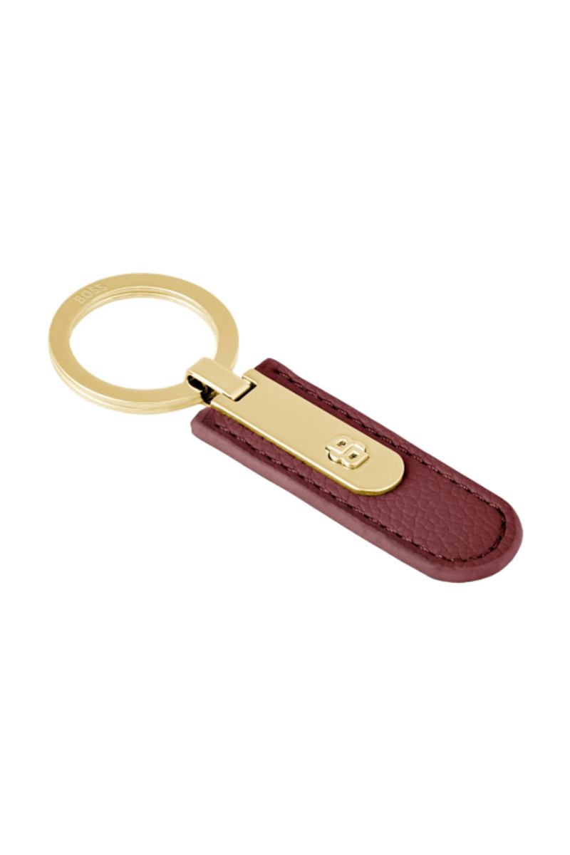 This keyring is crafted from carefully selected grained material and defined by a clean, minimal silhouette elevated with luxurious gold accents. A three-dimensional Double B signature emerges from the central band, creating a distinctive focal point, while the BOSS logo engraved on the ring completes the design with an understated signature. Offered in black, burgundy, taupe, nude, or lilac, it balances delicacy and refinement with a clear, modern BOSS touch.