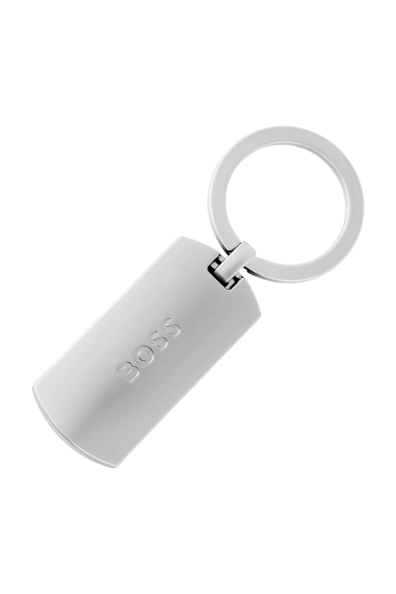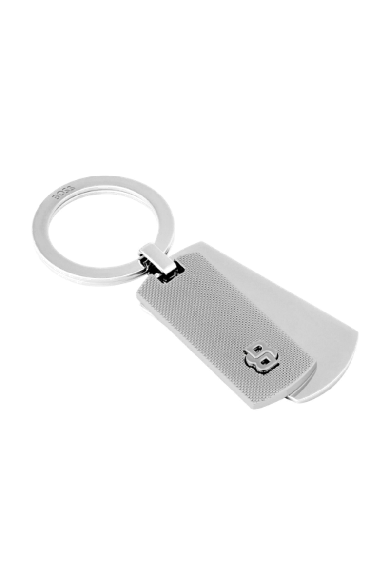 The Double B Diamond keyring is defined by a clean, precise design built around contrast and detail. It features two separate plates, one embossed with the BOSS logo and the other finished with a tight diamond-cut pattern for a refined, luxurious feel. A three-dimensional Double B plate is integrated onto the diamond-cut surface, creating a distinctive signature with added depth. The two-plate construction allows clear and practical marking areas while maintaining a sharp, minimal look. Available in chrome, gunmetal, or a black and gunmetal combination.