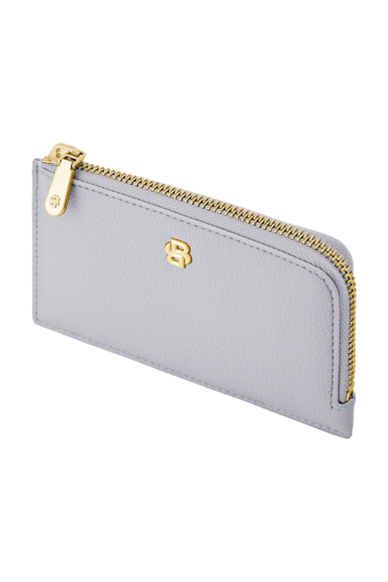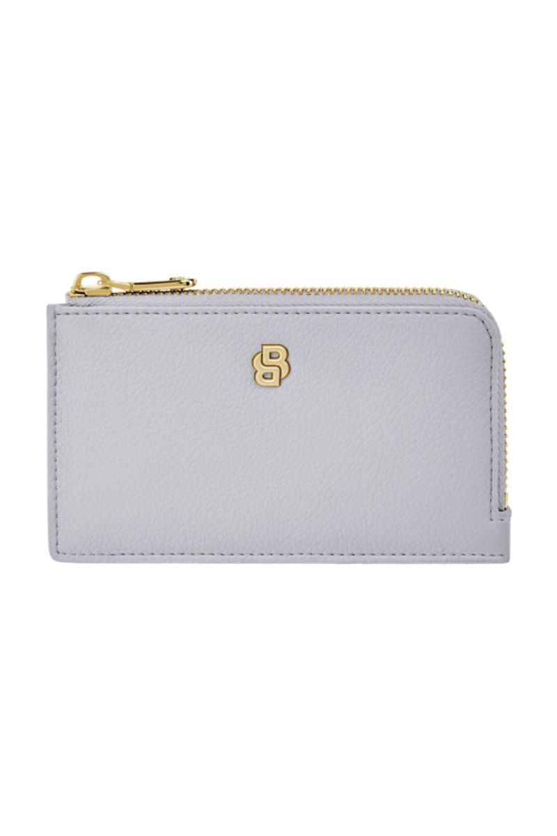 This compact pouch is crafted in grained matte PU and defined by a refined Double B signature plate on the front, complemented by a BOSS logo embossed on the back. The design features newly developed light gold–plated zippers adorned with a Double B detail, bringing a soft and delicate finish while remaining clean and minimal. The back is fitted with five card slots for easy access, while the roomy main compartment includes an additional interior slot for organized storage. Finished entirely with light gold trims, the piece is offered in a soft and vibrant color palette including black, burgundy, taupe, nude, and lilac.