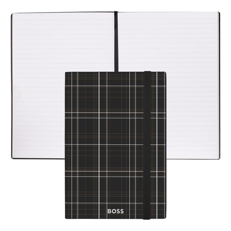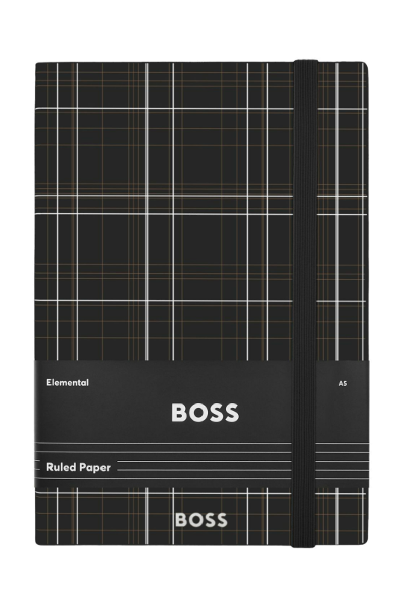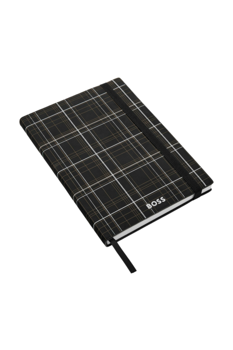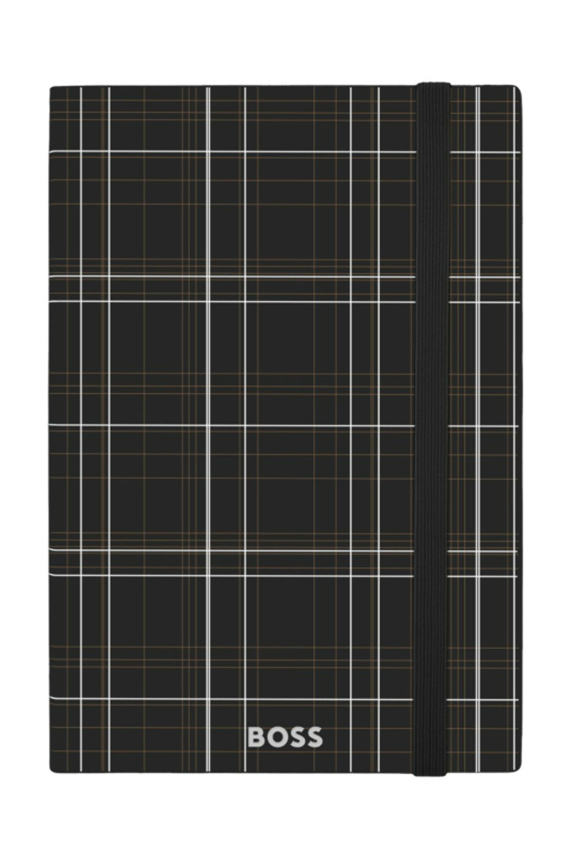 This Checkered notebook is crafted in smooth PU and features a bold checkered print inspired by the BOSS ready-to-wear line, creating a strong and graphic identity. The design is finished with a BOSS logo embossed on the front and highlighted with silver foil, while a vertical elastic closure and matching page marker ensure a cohesive look. Presented in an A5 format with lined paper, it contains 192 pages and combines everyday functionality with a distinctive visual signature.