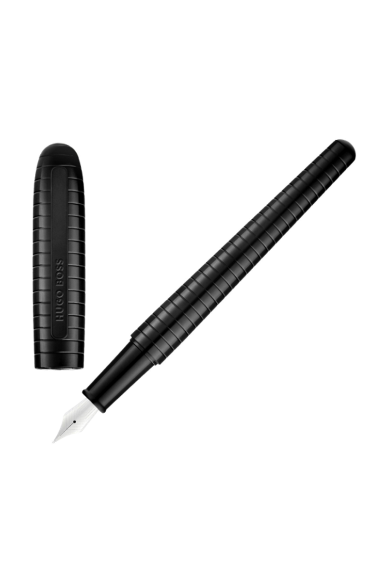 The Contour Bauhaus pen builds on the rounded, ogivoidal silhouette that has become a market favorite, with every line curved to create a fluid, seamless profile. Spaced horizontal lines bring an architectural, futuristic vibe, making the cap and barrel read as one continuous form. Plated in shiny finishes and signed with a HUGO BOSS logo on the clip, it comes in crisp chrome or deep, shiny black