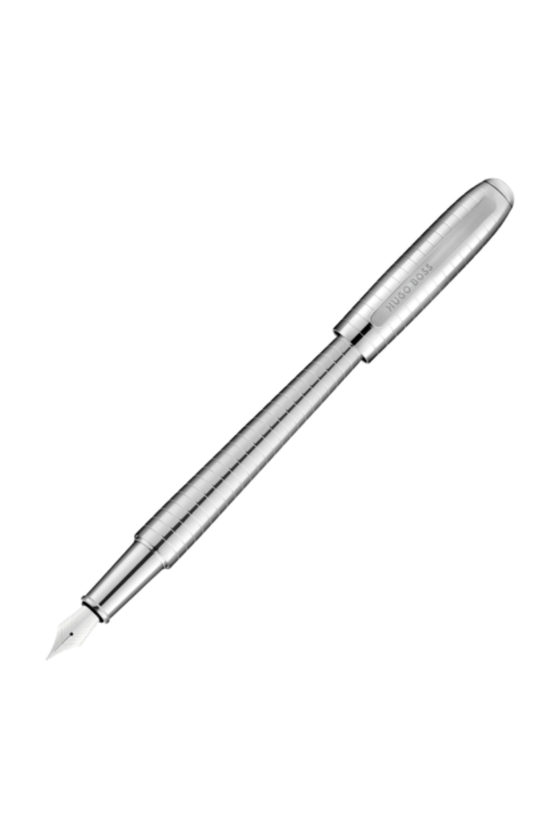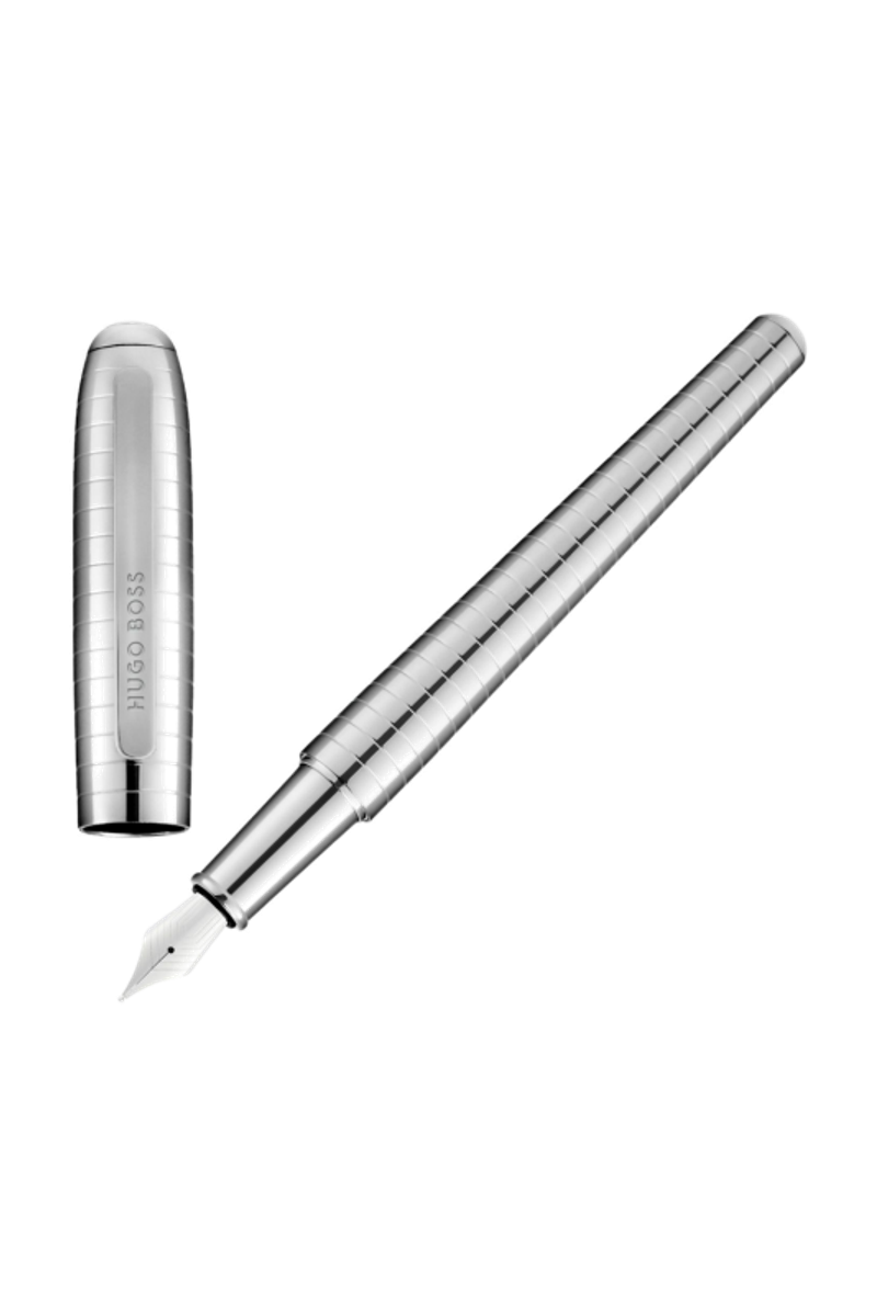 The Contour Bauhaus pen builds on the rounded, ogivoidal silhouette that has become a market favorite, with every line curved to create a fluid, seamless profile. Spaced horizontal lines bring an architectural, futuristic vibe, making the cap and barrel read as one continuous form. Plated in shiny finishes and signed with a HUGO BOSS logo on the clip, it comes in crisp chrome or deep, shiny black