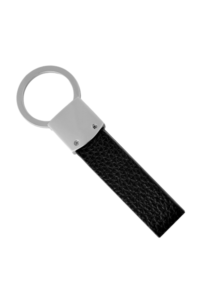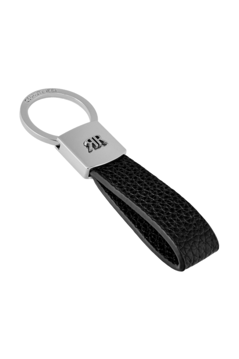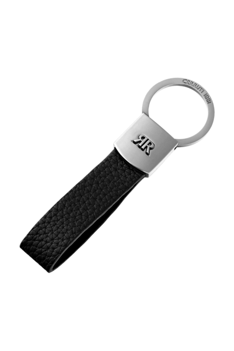 The Jefferson keyring in black combines grained vegan leather with crisp chrome accents to create a functional, minimal aesthetic rooted in timeless elegance. Its clean lines and refined contrasts highlight the sharp, architectural presence of the new CERRUTI 1881 3D RR logo, making it a modern essential crafted with purpose and clarity of design.