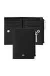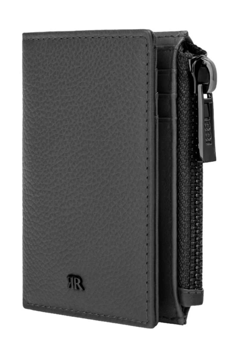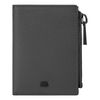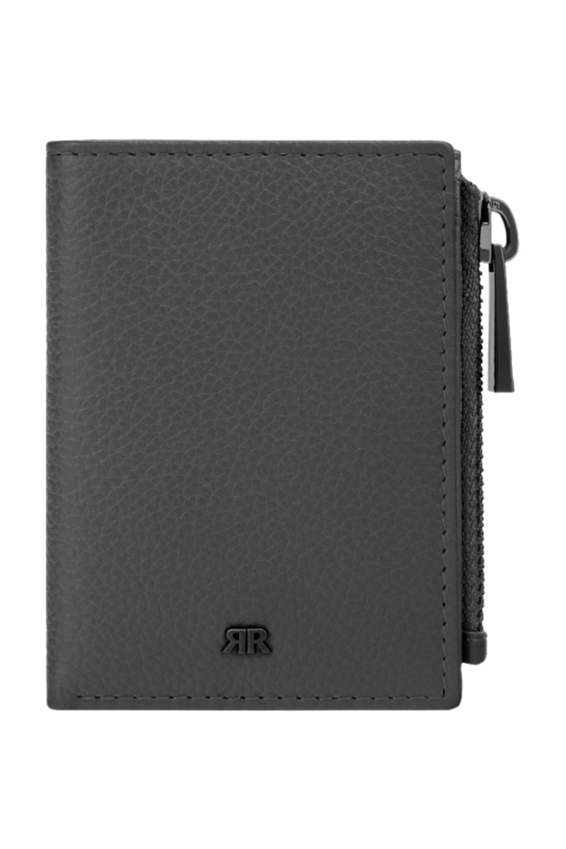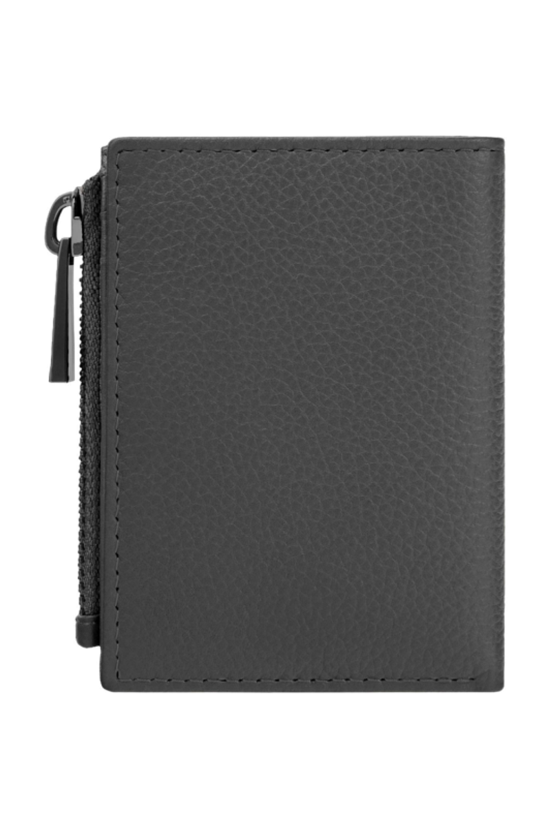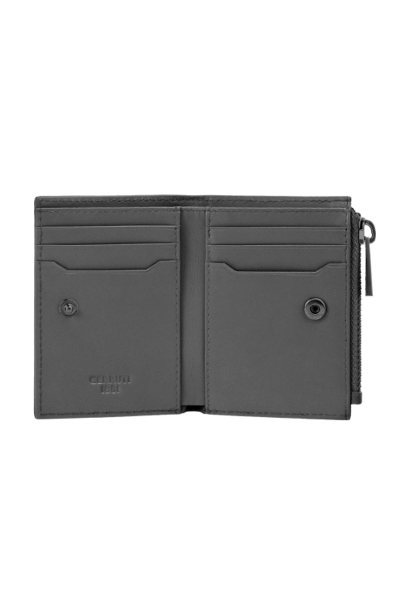 The CERRUTI 1881 Jefferson zipped card holder is compact and highly functional, offering six card slots, two vertical compartments, a main note compartment, and a zipped pocket housed in an impressively compact volume. Crafted in carefully selected grained, best-quality leather, it delivers durability and a refined tactile feel. The metal accents elevate the design: the 1881 zipper puller serves as a luxurious detail, while the miniature double signature in gunmetal blends seamlessly with the tonal grey leather, creating an understated, minimal, and quietly luxurious expression.