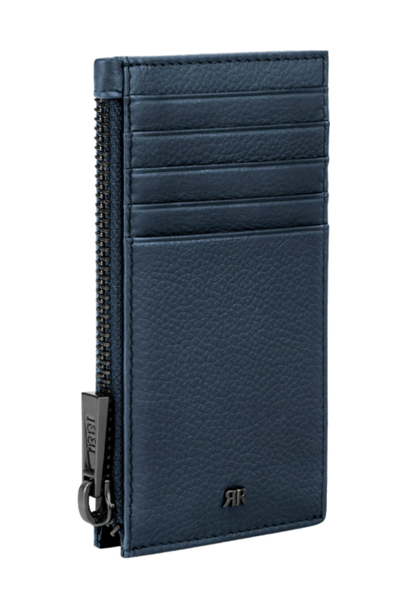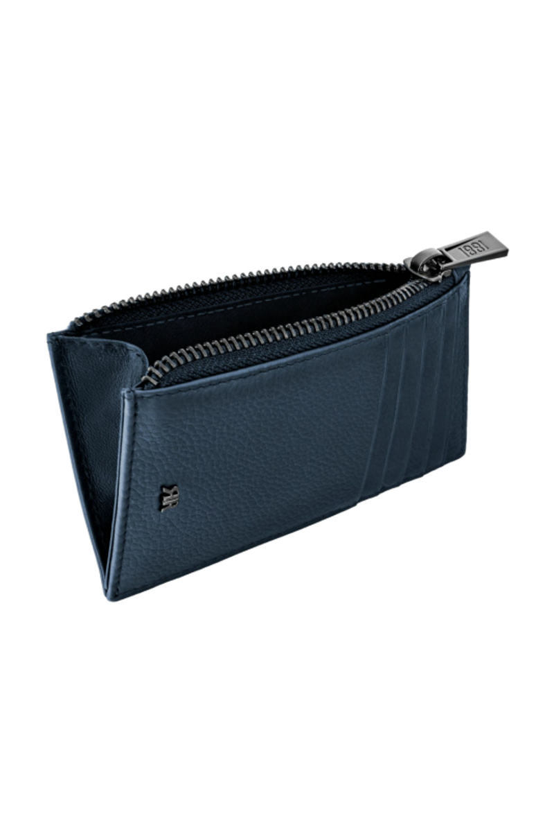 The CERRUTI 1881 Jefferson zipped card holder is compact and highly functional, offering five front card slots and a spacious gusseted zipped compartment that keeps essentials neatly organised within a slim silhouette. Made from carefully selected grained, best-quality leather, it delivers both durability and understated refinement. Elevated by its luxurious 1881-engraved zipper puller, the metal detailing adds depth and sophistication, while the miniature double R logo in gunmetal complements the elegant navy version with a subtle, contemporary character.
