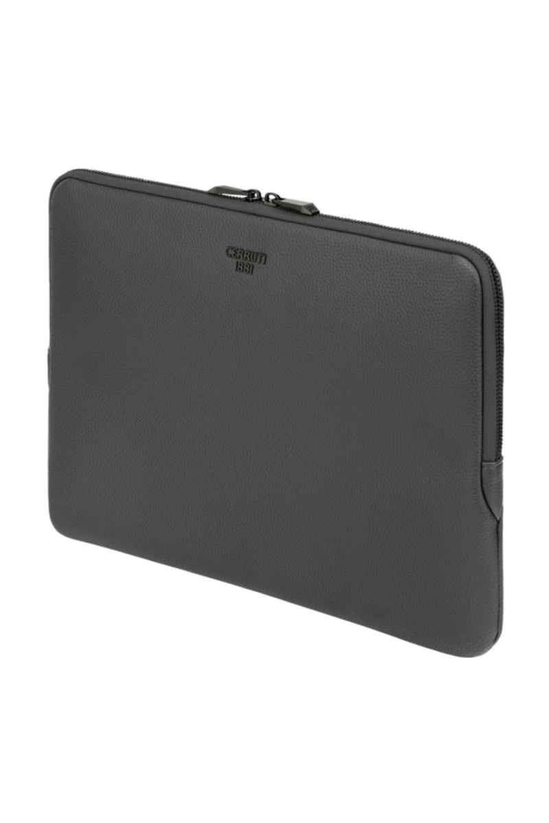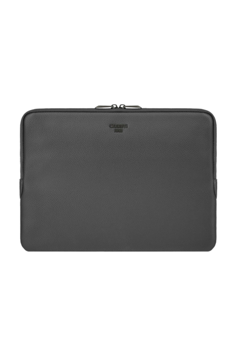 The Jefferson computer pouch in dark grey with gunmetal trims reflects understated elegance and pure minimalism. Designed to offer compact practicality and excellent laptop protection, it is shaped from a matte-grained texture chosen for its refined tactility. Gunmetal accents, including the new Cerruti 1881 plate and the angular RR-engraved signature zipper pullers, subtly enrich the clean design without compromising its simplicity. Completed with a monogramed lining, this is a timeless everyday accessory marked by precision and craftsmanship.