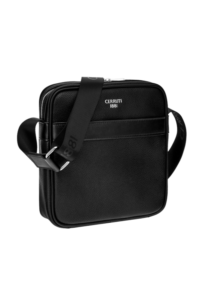 The Jefferson reporter bag in black with chrome trims offers a classical and elegant interpretation of everyday functionality. Compact, minimal, and roamy, it allows perfect organisation with its monogramed lining, inside zipped pocket, and practical front flat pocket. Crafted from a carefully chosen matte-grained texture, it balances simplicity with luxury, highlighted by chrome metal accents and the new Cerruti 1881 plate celebrating the updated logo. The adaptable webbing strap featuring a tone-on-tone logo completes this beautifully crafted, timeless accessory.