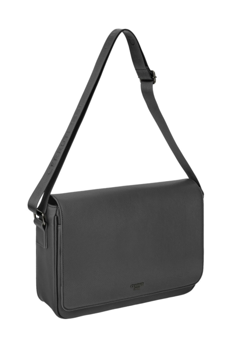 The Jefferson cross-body document bag in dark grey with gunmetal trims expresses understated elegance and a pure minimalist spirit. Its compact proportions are balanced by a roamy structure that allows effortless organisation, supported by a monogramed lining, an inside zipped pocket, and a front flat pocket. The matte-grained texture reinforces its refined tactility, while gunmetal accents—highlighted by the new Cerruti 1881 plate—bring depth without disrupting the simplicity of the design. An adaptable webbing strap with a tone-on-tone logo further enhances this timeless everyday piece.