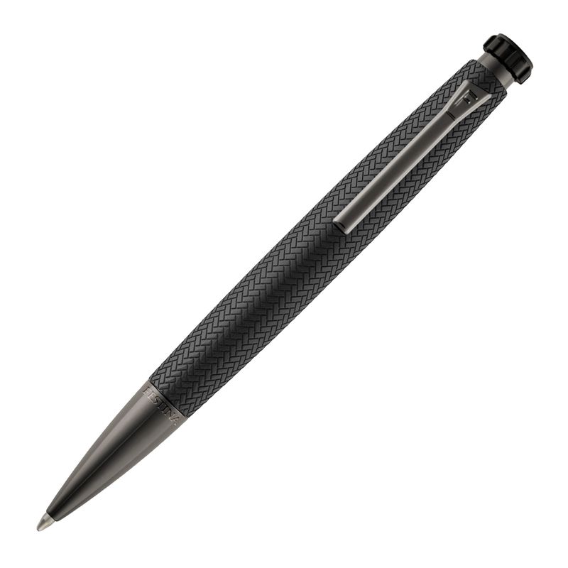 The Interlace ballpoint pen in black and gunmetal is built on the best-selling Chronobike shape and elevated with a woven-inspired surface texture drawn from the eponymous line, bringing depth and sophistication to its tapered, aerodynamic silhouette. This new edition introduces a refined luxe dimension, while the blazon logo engraved on the signature top feature—reminiscent of a watch button—serves as a distinctive Festina hallmark. Presented in a beautiful, understated black palette with gunmetal trims, it offers a modern, active feel with a polished finish.