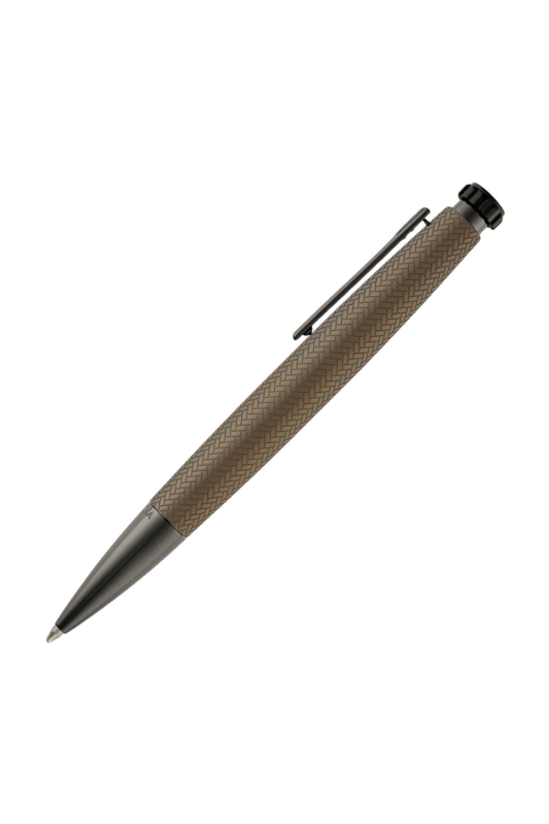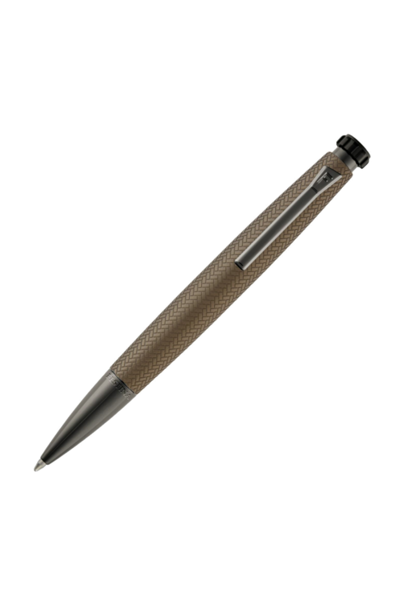 The Interlace ballpoint pen in taupe and gunmetal pairs the celebrated Chronobike form with the line’s signature woven-inspired texture, creating a look defined by depth, modernity, and quiet luxury. Its tapered, aerodynamic shape introduces a dynamic character, complemented by the richness of gunmetal trims. The engraved blazon on the watch-inspired top detail serves as a clear Festina hallmark. Presented in an understated taupe hue, this edition offers a uniquely elegant and contemporary expression of the Interlace aesthetic.