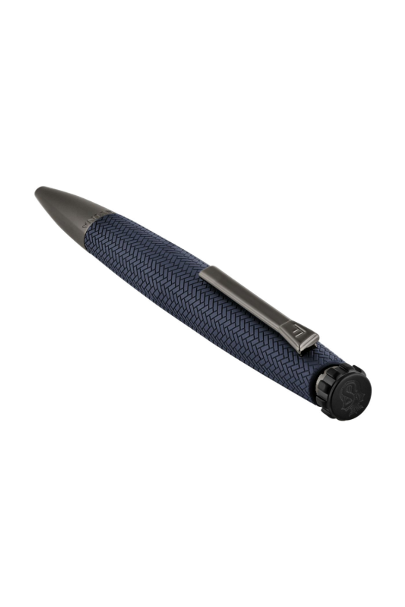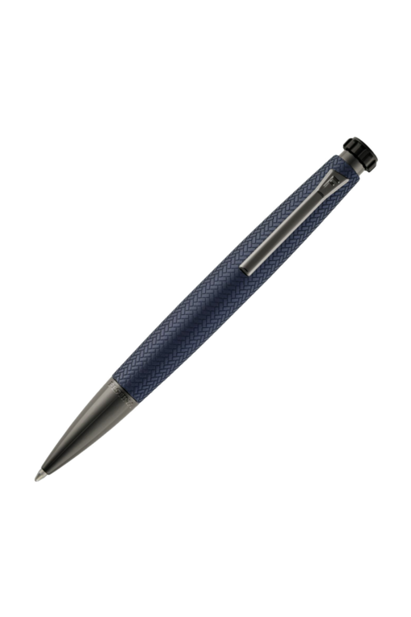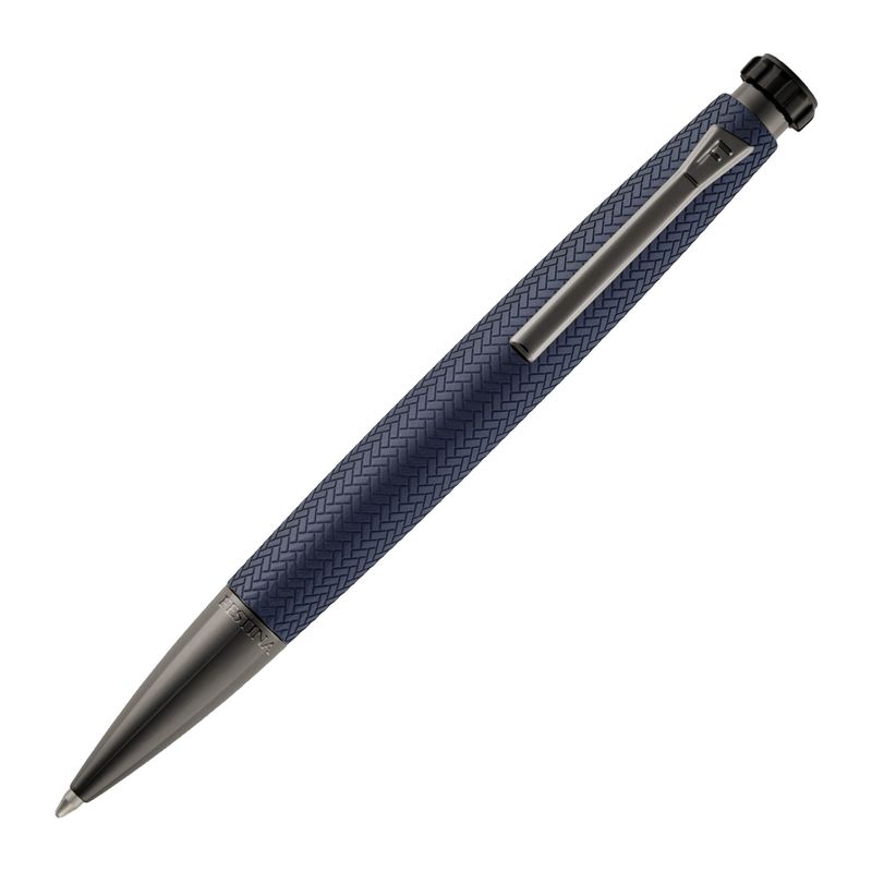 The Interlace ballpoint pen in navy and gunmetal continues the iconic Chronobike lineage, distinguished by the woven-inspired textured surface that brings depth and elegance to its streamlined, aerodynamic profile. The palette remains beautifully understated, while gunmetal trims add a luxurious contrast. The engraved blazon on the signature watch-inspired top feature reinforces its Festina signature. With its active feel and refined finish, this navy edition delivers modern sophistication with a subtle touch of color.