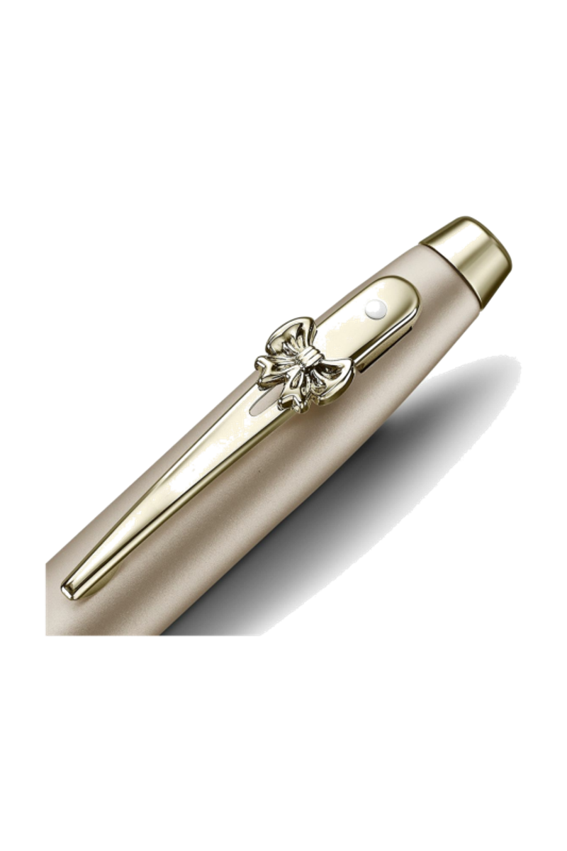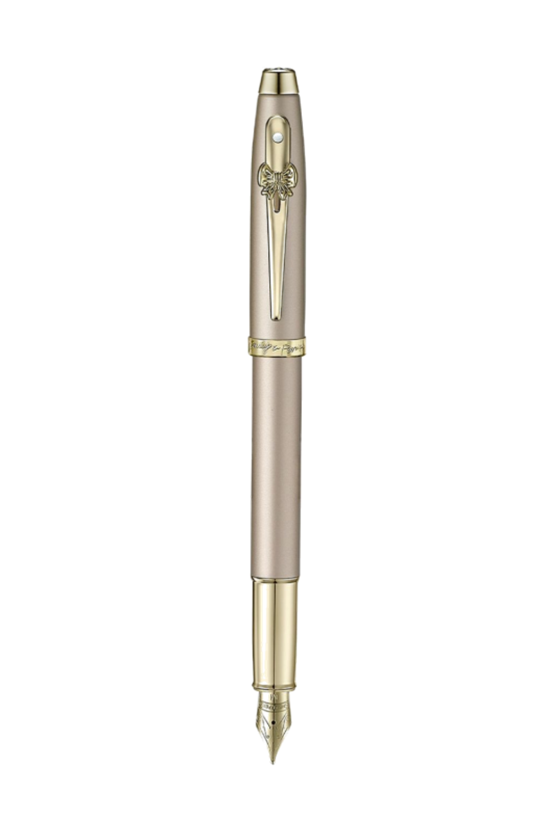 Le stylo plume Sheaffer 100 a été réimaginé dans une laque or champagne radieuse avec des garnitures ton or champagne étincelantes pour l'édition spéciale Emily in Paris. Conçu pour transformer l'écriture quotidienne en un moment de plaisir, ce stylo est synonyme d'élégance discrète et d'emblème sans effort. L'emblème en forme de nœud signature trône fièrement sur le clip - une ode au style emblématique d'Emily - tandis que la bande centrale co-brandée ajoute une touche de collection à cette silhouette classique. Lisse, équilibré et facile à aimer, il est fait pour celles qui aiment leurs mots avec un peu plus d'éclat.