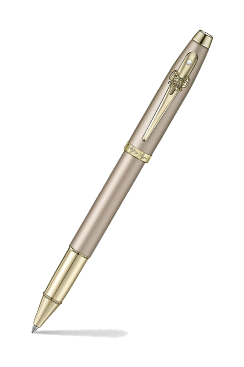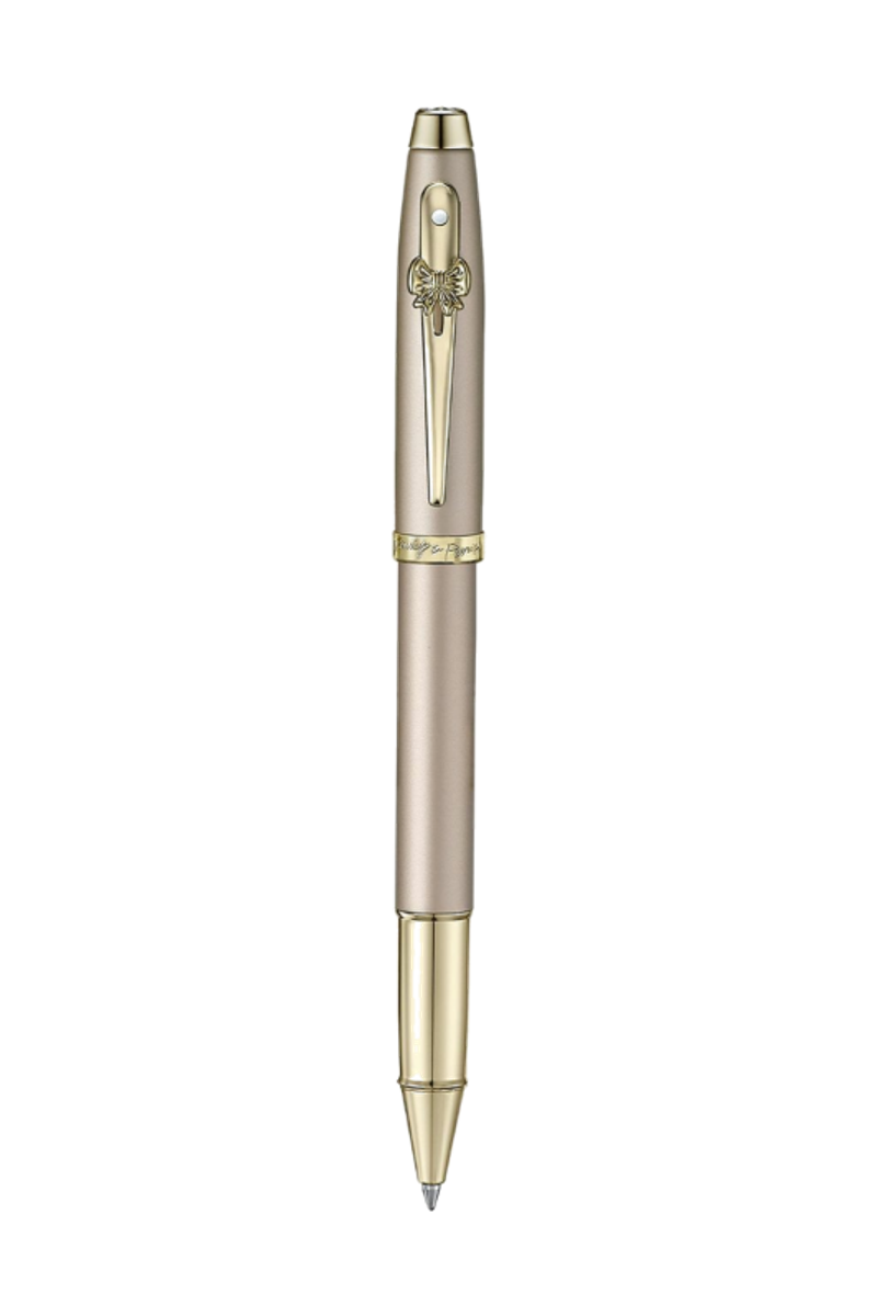 Le stylo roller Sheaffer 100 brille dans cette édition spéciale Emily in Paris, habillé d'une laque lumineuse or champagne avec des garnitures polies or champagne. L'emblème du clip en forme de nœud ajoute un clin d'œil ludique à la signature d'Emily, tandis que la bande centrale co-brandée en fait une véritable pièce de collection. Avec son écriture douce et fluide et sa forme parfaitement équilibrée, ce stylo est fait pour transformer la plus simple des notes en quelque chose de très chic.