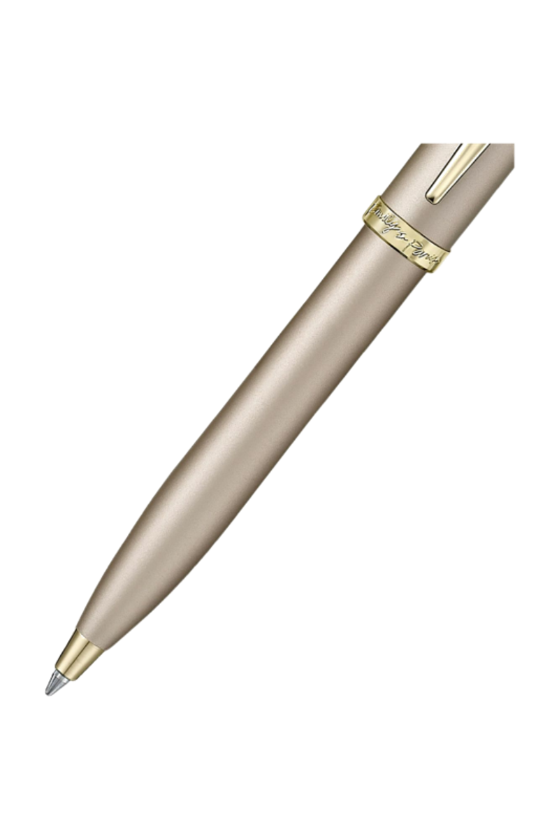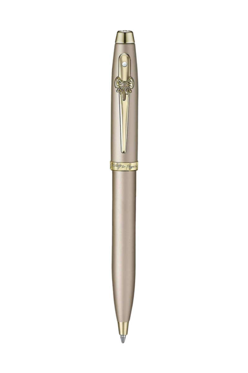 Cette édition spéciale du stylo à bille Sheaffer 100 apporte une touche de la signature d'Emily à votre écriture quotidienne. Habillé d'une douce laque or champagne et complété par des garnitures dorées étincelantes, il est à la fois élégant et facile à utiliser. Un délicat emblème en forme de nœud sur le clip ajoute un clin d'œil ludique à l'esprit avant-gardiste d'Emily, tandis que la bande centrale co-brandée offre un détail subtil à collectionner. Avec son mécanisme à rotation douce et sa prise en main confortable, ce stylo est parfait pour tout, des listes de choses à faire aux notes d'amour.