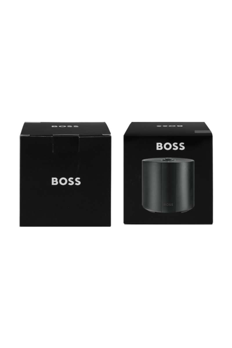 The Elemental speaker is compact and easily portable, pairing refined metallized finishes with a clear, engaging 5W sound. The Double B logo highlights the main control button, while the BOSS signature subtly completes the design. With five hours of autonomy and convenient USB-C charging, it is both practical and expressive. Available in three versions—black, silver, and metallized camel.