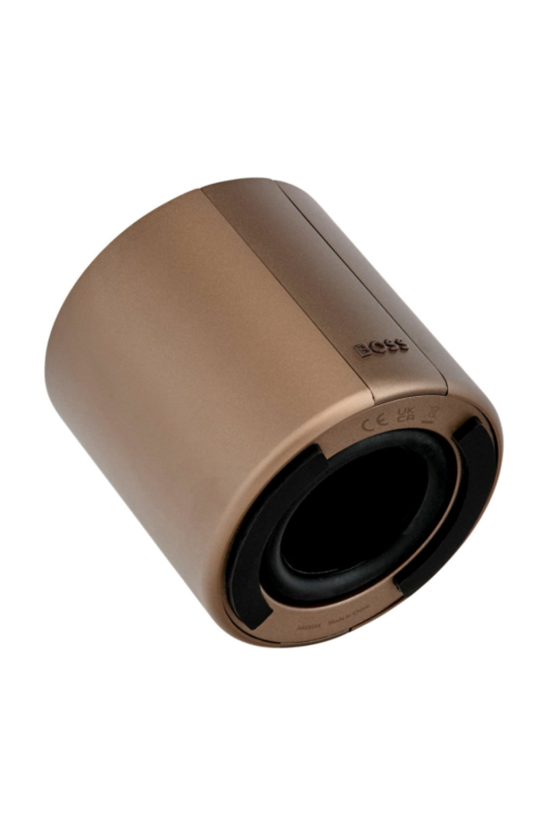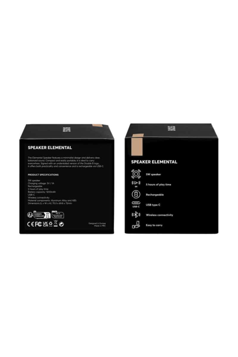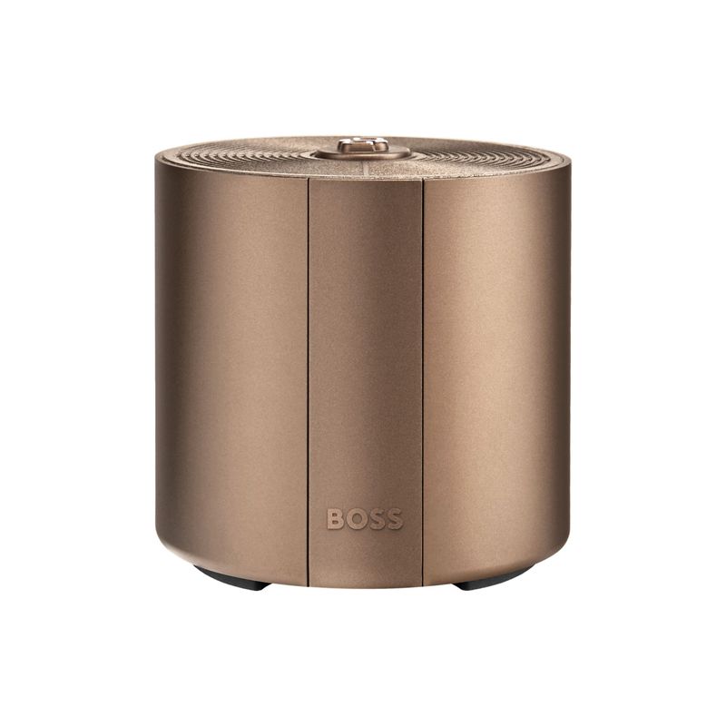 The Elemental speaker is compact and easily portable, pairing refined metallized finishes with a clear, engaging 5W sound. The Double B logo highlights the main control button, while the BOSS signature subtly completes the design. With five hours of autonomy and convenient USB-C charging, it is both practical and expressive. Available in three versions—black, silver, and metallized camel.
