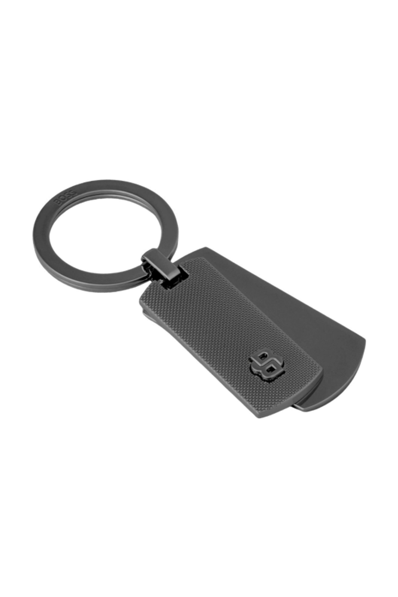 The Double B Diamond keyring is defined by a clean, precise design built around contrast and detail. It features two separate plates, one embossed with the BOSS logo and the other finished with a tight diamond-cut pattern for a refined, luxurious feel. A three-dimensional Double B plate is integrated onto the diamond-cut surface, creating a distinctive signature with added depth. The two-plate construction allows clear and practical marking areas while maintaining a sharp, minimal look. Available in chrome, gunmetal, or a black and gunmetal combination.