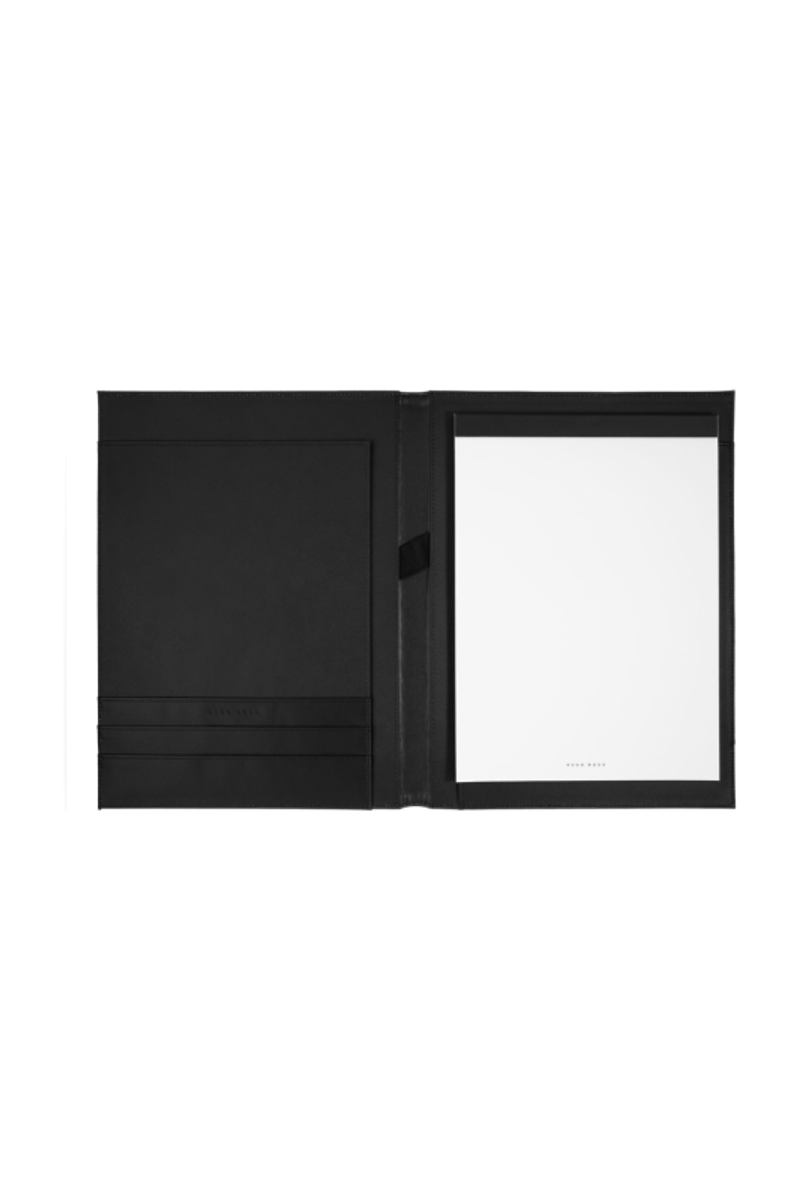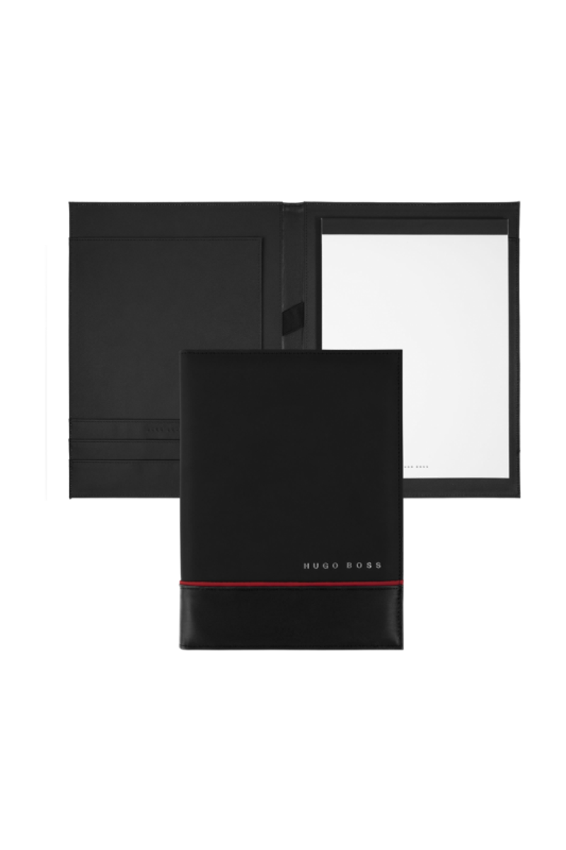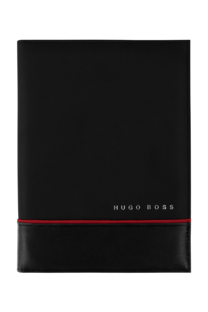 L'aspect résolument moderne de l'écritoire Explore est défini par sa forme épurée. Les surfaces brossées sophistiquées sont mélangées avec une texture finition gomme. Des éléments raffinés tels que le passepoil coloré et la plaque métallique HUGO BOSS apportent des détails uniques au produit. La version A5 est disponible en noir ou en gris
