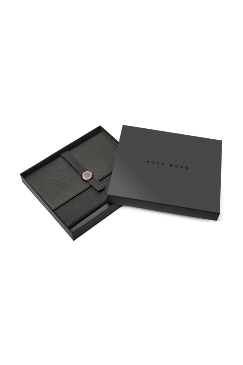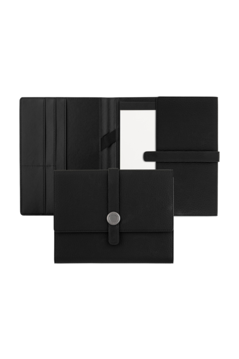 Les écritoires Executive sont conçus pour devenir des classiques instantanés. Ils sont réalisés dans une matière souple grainée mise en valeur par un système de fermeture ingénieux et minimaliste, articulé autour d'un élégant pont métallique mat. Cet accessoire essentiel peut être assorti aux instruments d'écriture de toute la gamme HUGO BOSS. L'écritoire A5 est disponible en noir et canon de fusil mat ou en gris et chrome mat.