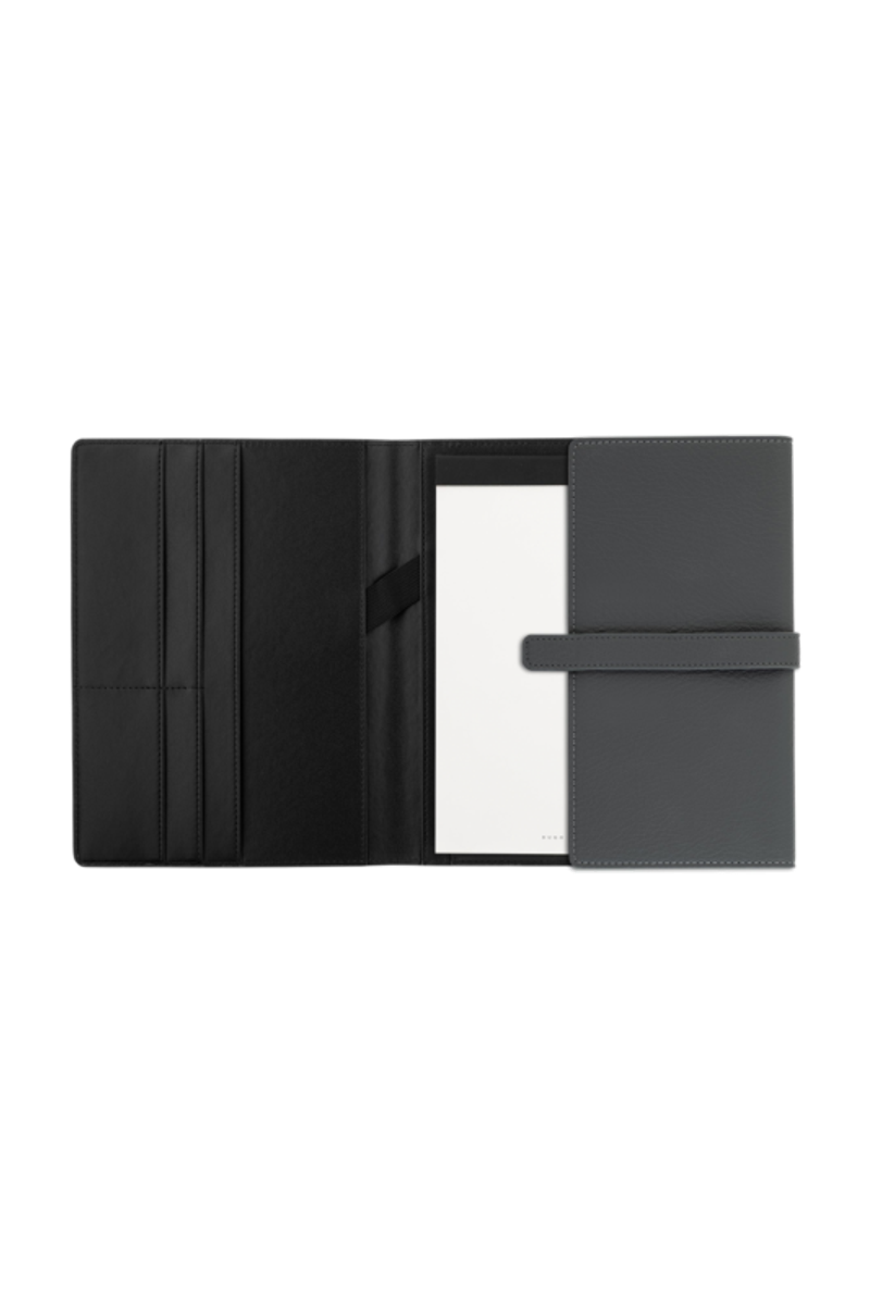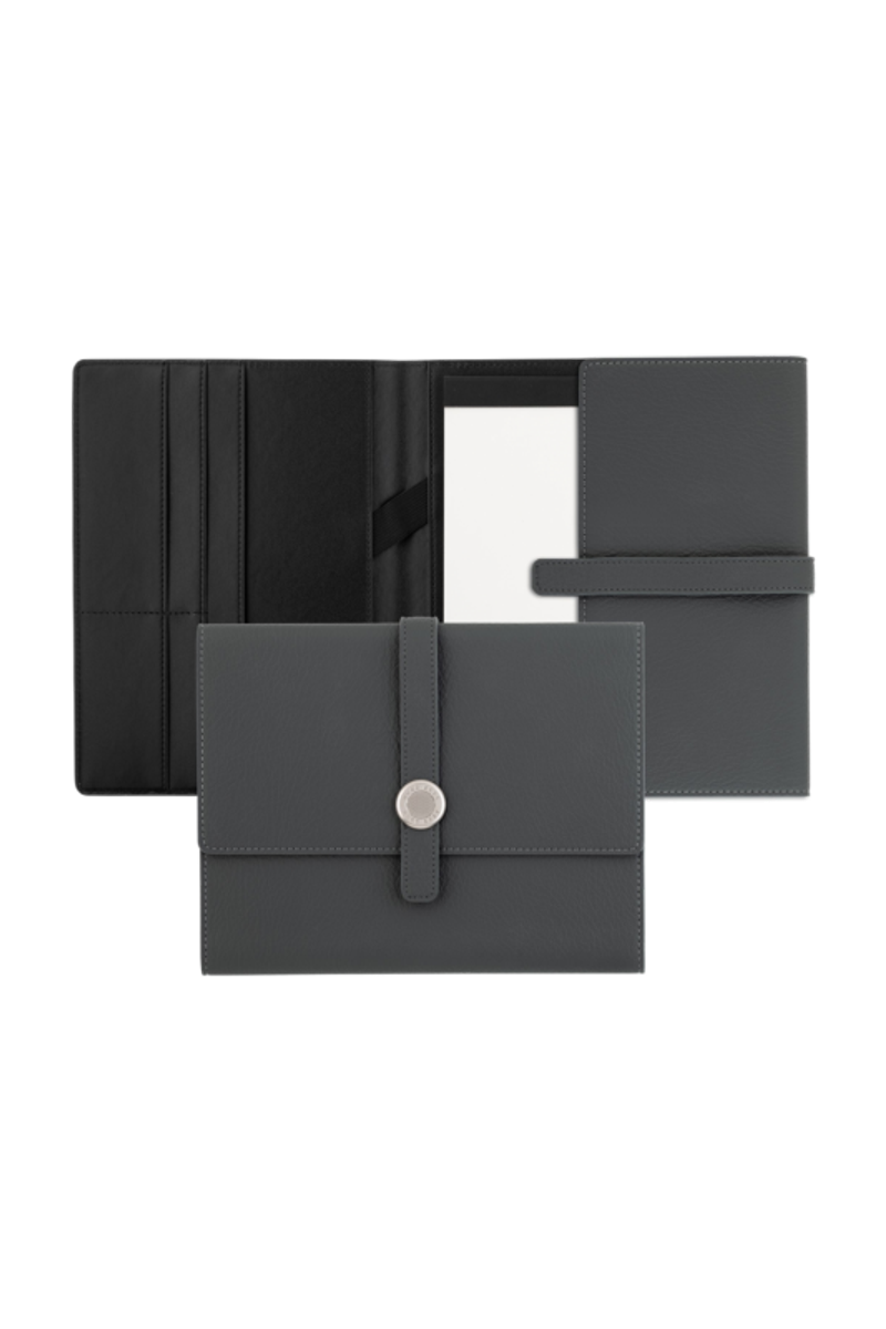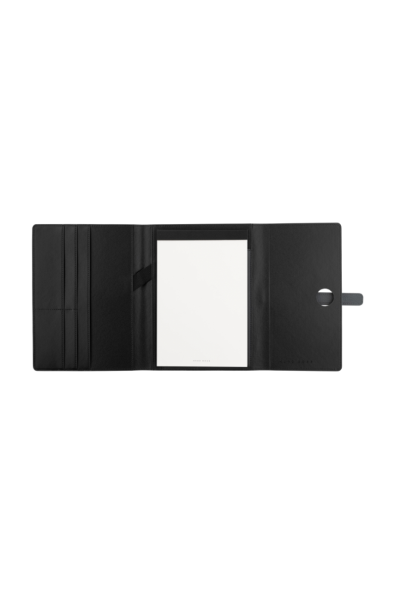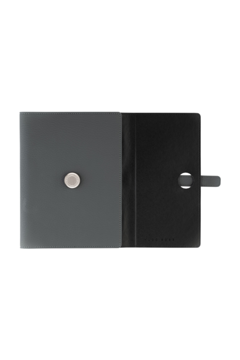 Les écritoires Executive sont conçus pour devenir des classiques instantanés. Ils sont réalisés dans une matière souple grainée mise en valeur par un système de fermeture ingénieux et minimaliste, articulé autour d'un élégant pont métallique mat. Cet accessoire essentiel peut être assorti aux instruments d'écriture de toute la gamme HUGO BOSS. L'écritoire A5 est disponible en noir et canon de fusil mat ou en gris et chrome mat.