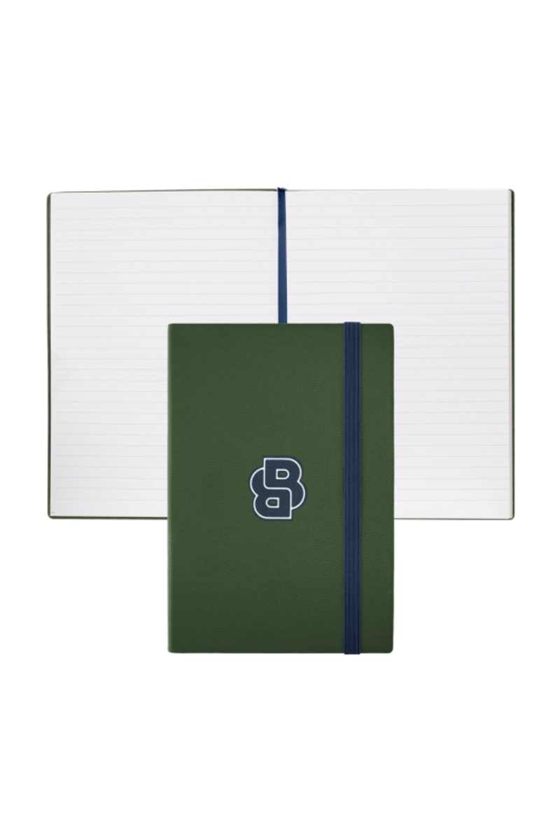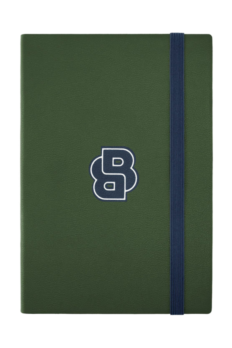 The Varsity notebook brings a youthful, varsity-inspired spirit through a bold graphical reinterpretation of the Double B logo, creating a strong and dynamic visual statement. Defined by a clean, modern cover and a confident graphic identity, the line is offered in playful yet neutral shades including black, camel, dark green, navy, and burgundy. Each notebook is presented in an A5 format with lined paper and contains 192 pages, making it a functional everyday essential with a distinctive, graphic presence.