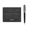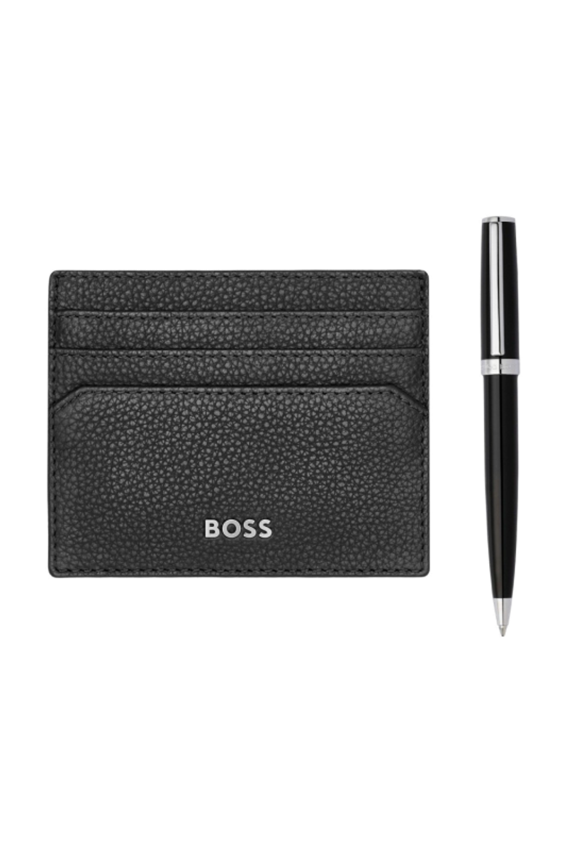 Découvrez notre ensemble élégant qui allie style et fonctionnalité, parfait pour ceux qui apprécient la qualité. Tout d'abord, le porte-cartes classique en cuir grainé noir, un accessoire indispensable pour l'homme moderne. D'une texture riche et durable, il offre un espace pour six cartes et une poche pour les billets. Son design épuré et compact facilite le transport, tout en intégrant une protection RFID pour la sécurité de vos données. Complétant cet ensemble, le stylo à bille Gear Icon noir allie sophistication et performance. Avec son corps en laiton et sa finition brillante, il se distingue par son élégance. L'encre bleue fluide assure une écriture précise et agréable. Que ce soit pour une signature importante ou des notes rapides, ce stylo est votre compagnon idéal. Ensemble, ces pièces incarnent l'art du raffinement et de la praticité.