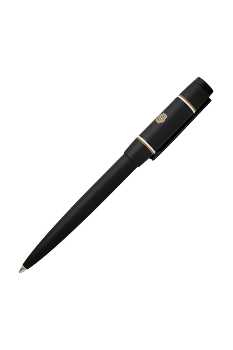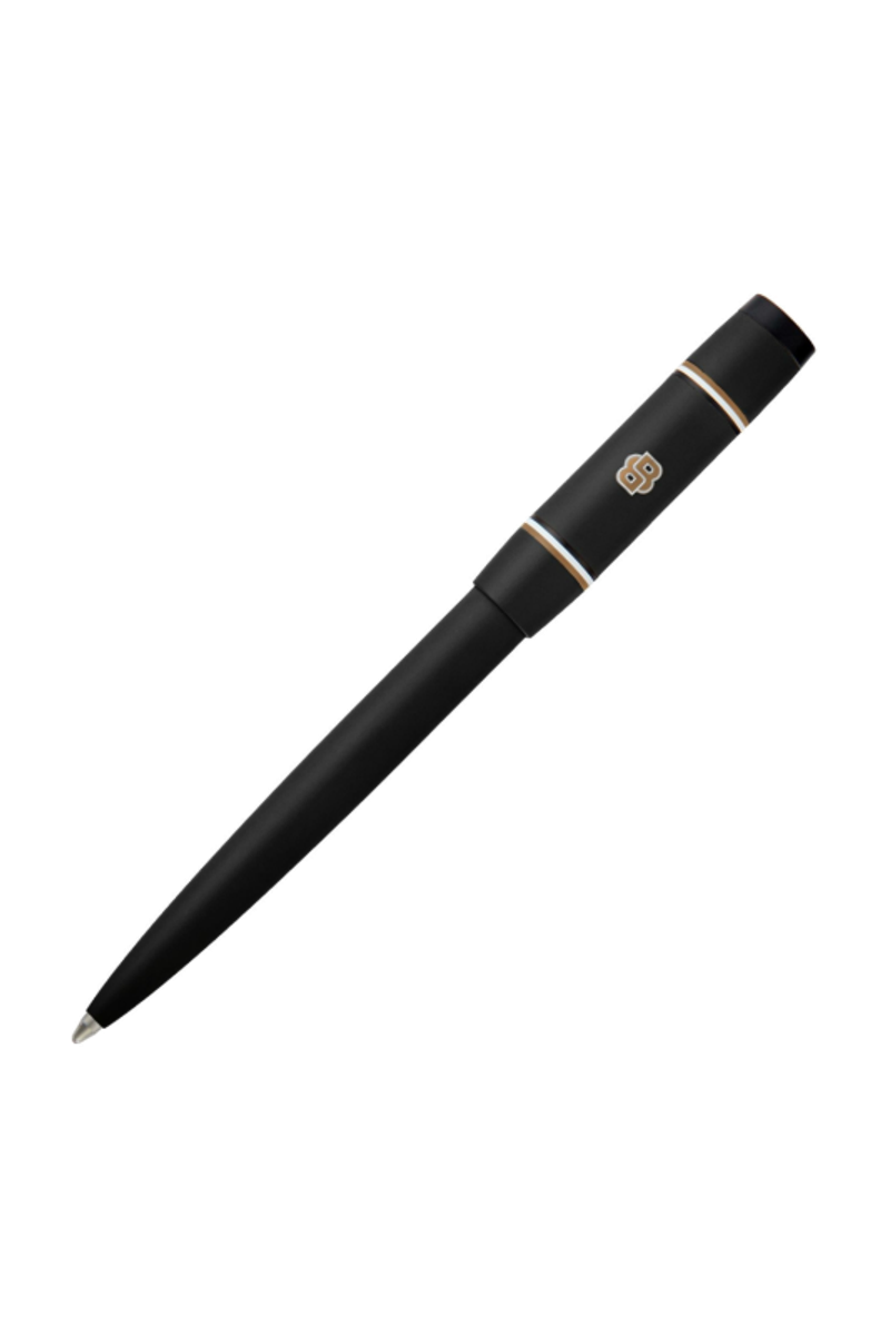 The Rive varsity pen brings a fresh, spirited twist to the celebrated Rive silhouette, introducing a colorful, graphic, and playful energy. A printed Double B logo with a crisp white outline forms the central design, framed by two ultra-slim, mirroring iconic stripes. Matte black trims underscore the modern, graphical feel, while an engraved HUGO BOSS logo at the top adds refinement. Available in black, camel, navy, burgundy, and dark green, it offers a vibrant take on contemporary style.