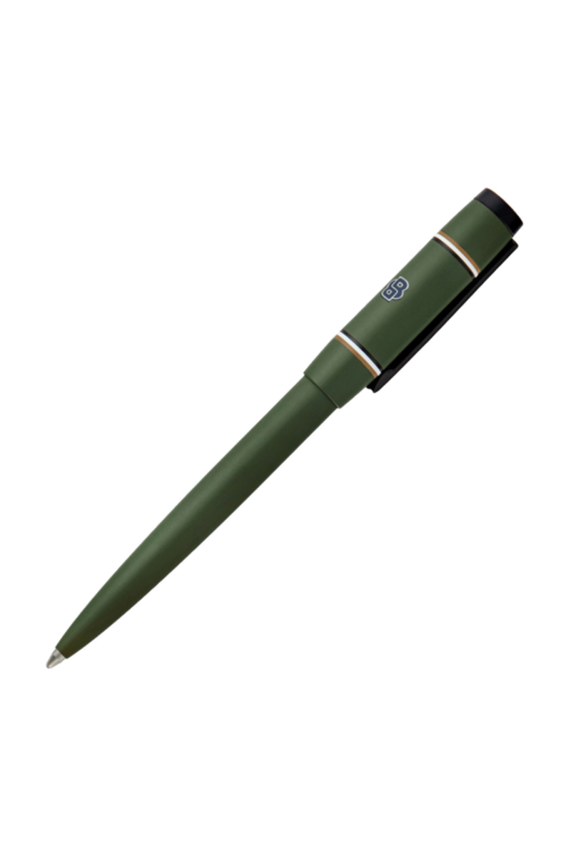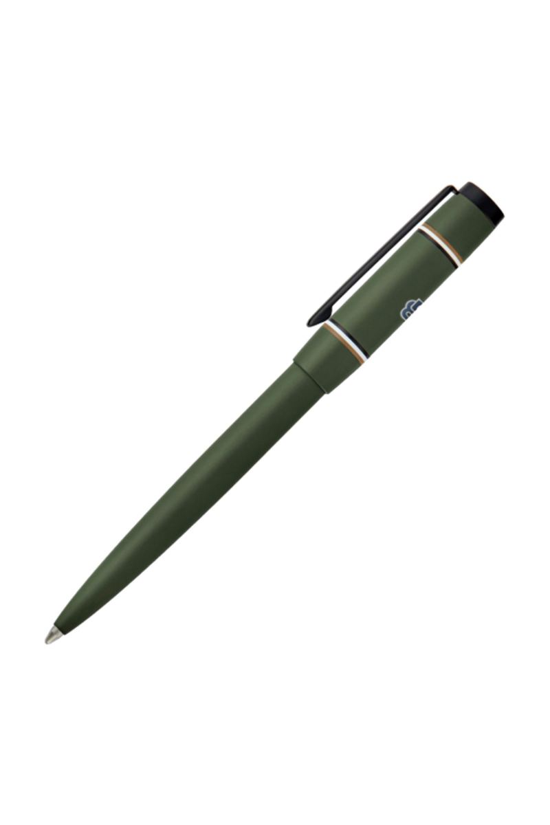 The Rive varsity pen brings a fresh, spirited twist to the celebrated Rive silhouette, introducing a colorful, graphic, and playful energy. A printed Double B logo with a crisp white outline forms the central design, framed by two ultra-slim, mirroring iconic stripes. Matte black trims underscore the modern, graphical feel, while an engraved HUGO BOSS logo at the top adds refinement. Available in black, camel, navy, burgundy, and dark green, it offers a vibrant take on contemporary style.