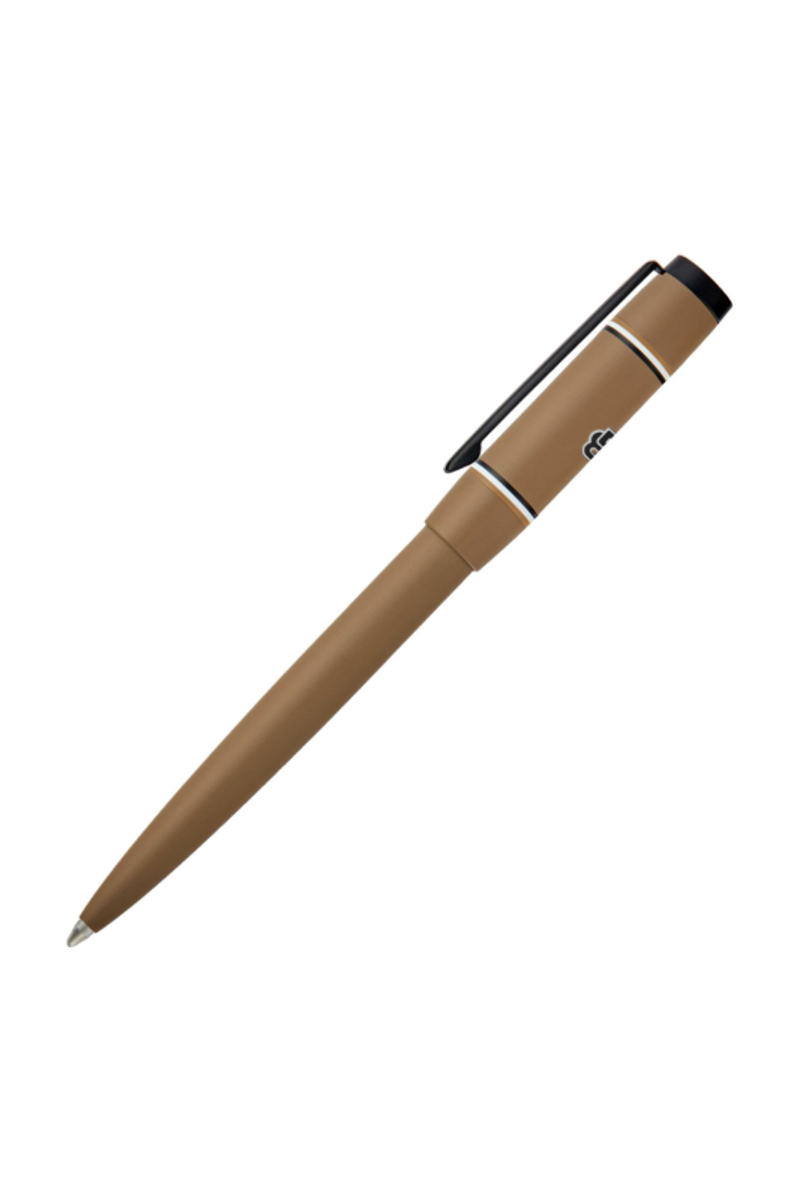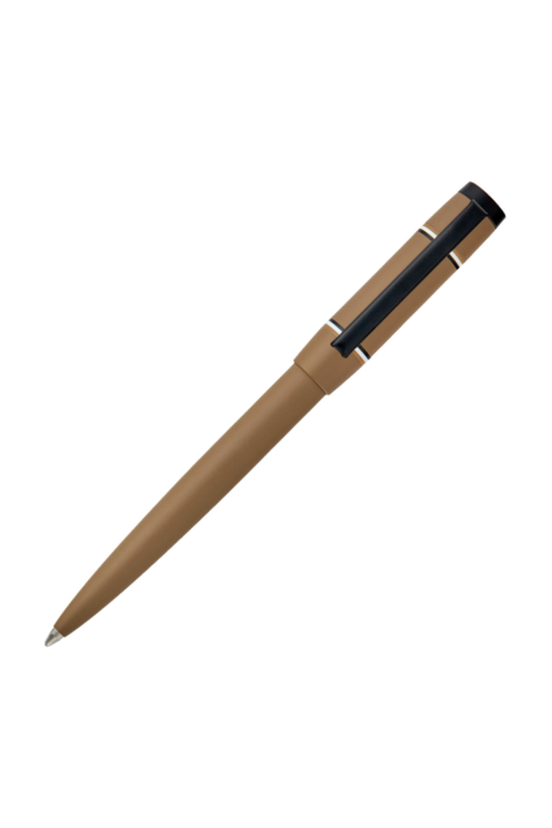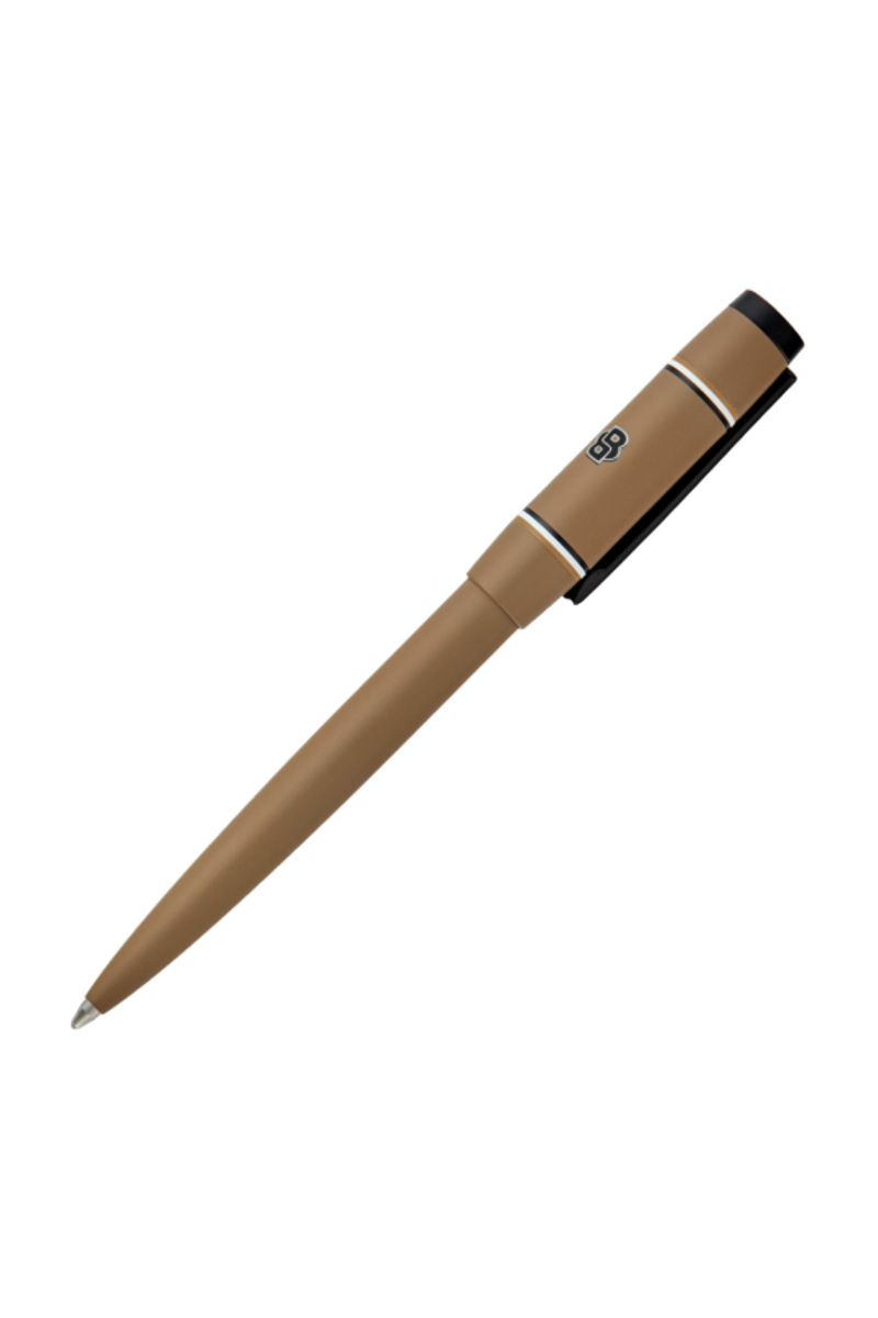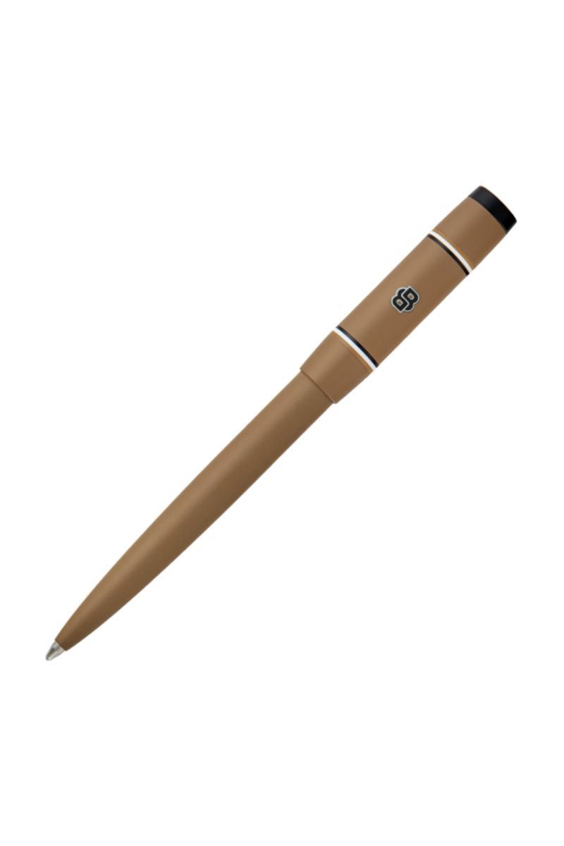 The Rive varsity pen brings a fresh, spirited twist to the celebrated Rive silhouette, introducing a colorful, graphic, and playful energy. A printed Double B logo with a crisp white outline forms the central design, framed by two ultra-slim, mirroring iconic stripes. Matte black trims underscore the modern, graphical feel, while an engraved HUGO BOSS logo at the top adds refinement. Available in black, camel, navy, burgundy, and dark green, it offers a vibrant take on contemporary style.