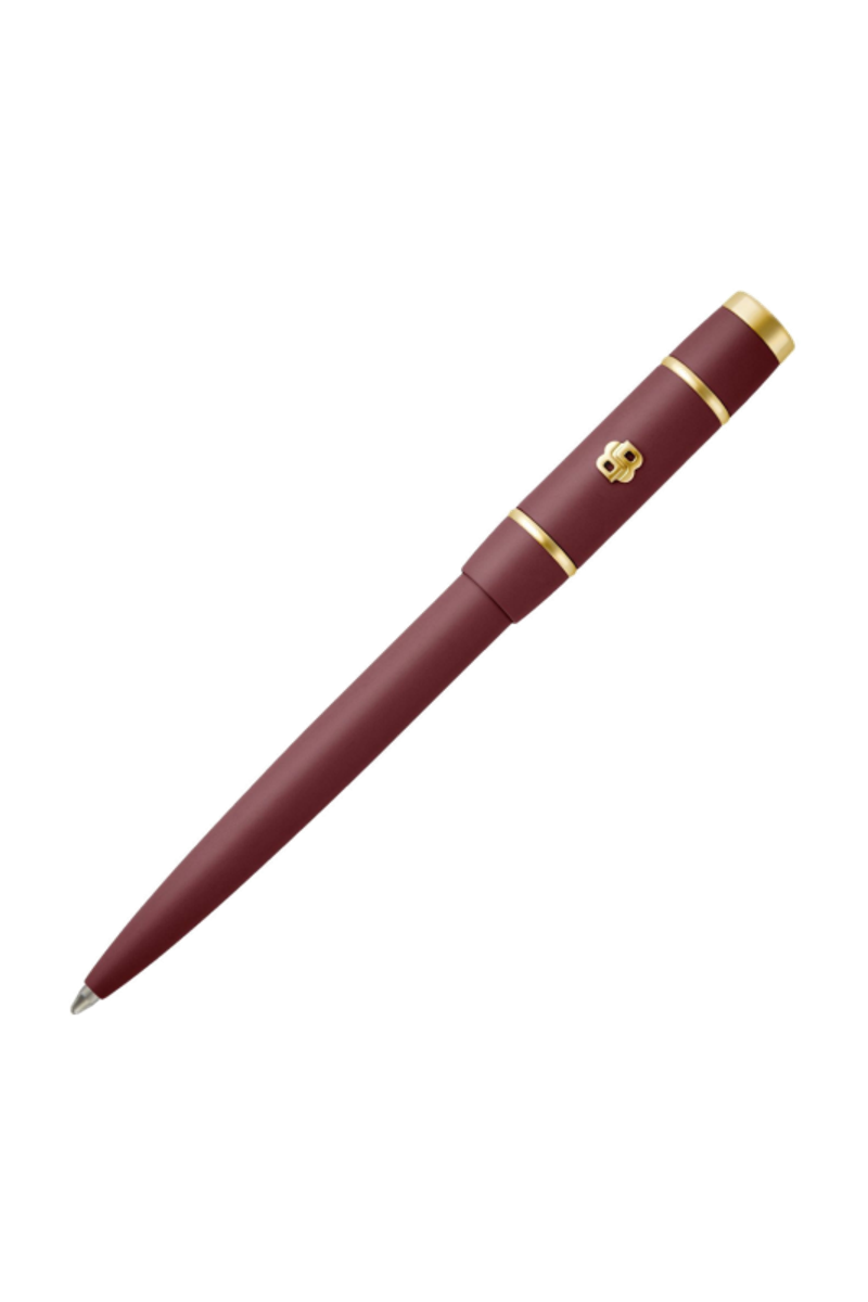 Built on the Rive silhouette, this signature lady pen expresses a modern, sleek line with refined proportions. Gold accents subtly illuminate the design, bringing a soft sense of allure while preserving a clean, contemporary aesthetic. The Double B 3D element, luxuriously plated in gold, stands as a distinctive signature, echoing the codes of the lady line with coherence and elegance. Offered in a soft yet vibrant palette of black, burgundy, lilac, taupe, and nude, the pen balances character and delicacy with ease. Designed to pair seamlessly with the eponymous small leather goods line and folders, it completes coordinated sets with a polished and harmonious finish.