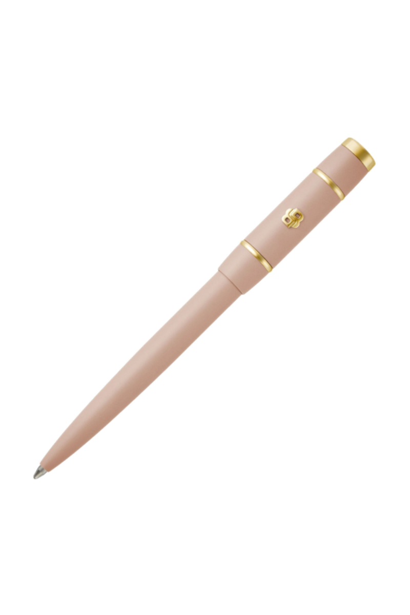 Built on the Rive silhouette, this signature lady pen expresses a modern, sleek line with refined proportions. Gold accents subtly illuminate the design, bringing a soft sense of allure while preserving a clean, contemporary aesthetic. The Double B 3D element, luxuriously plated in gold, stands as a distinctive signature, echoing the codes of the lady line with coherence and elegance. Offered in a soft yet vibrant palette of black, burgundy, lilac, taupe, and nude, the pen balances character and delicacy with ease. Designed to pair seamlessly with the eponymous small leather goods line and folders, it completes coordinated sets with a polished and harmonious finish.