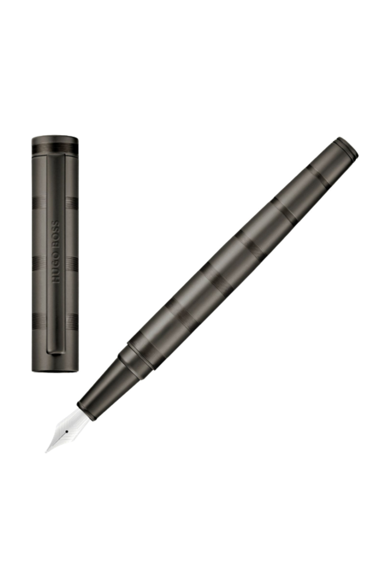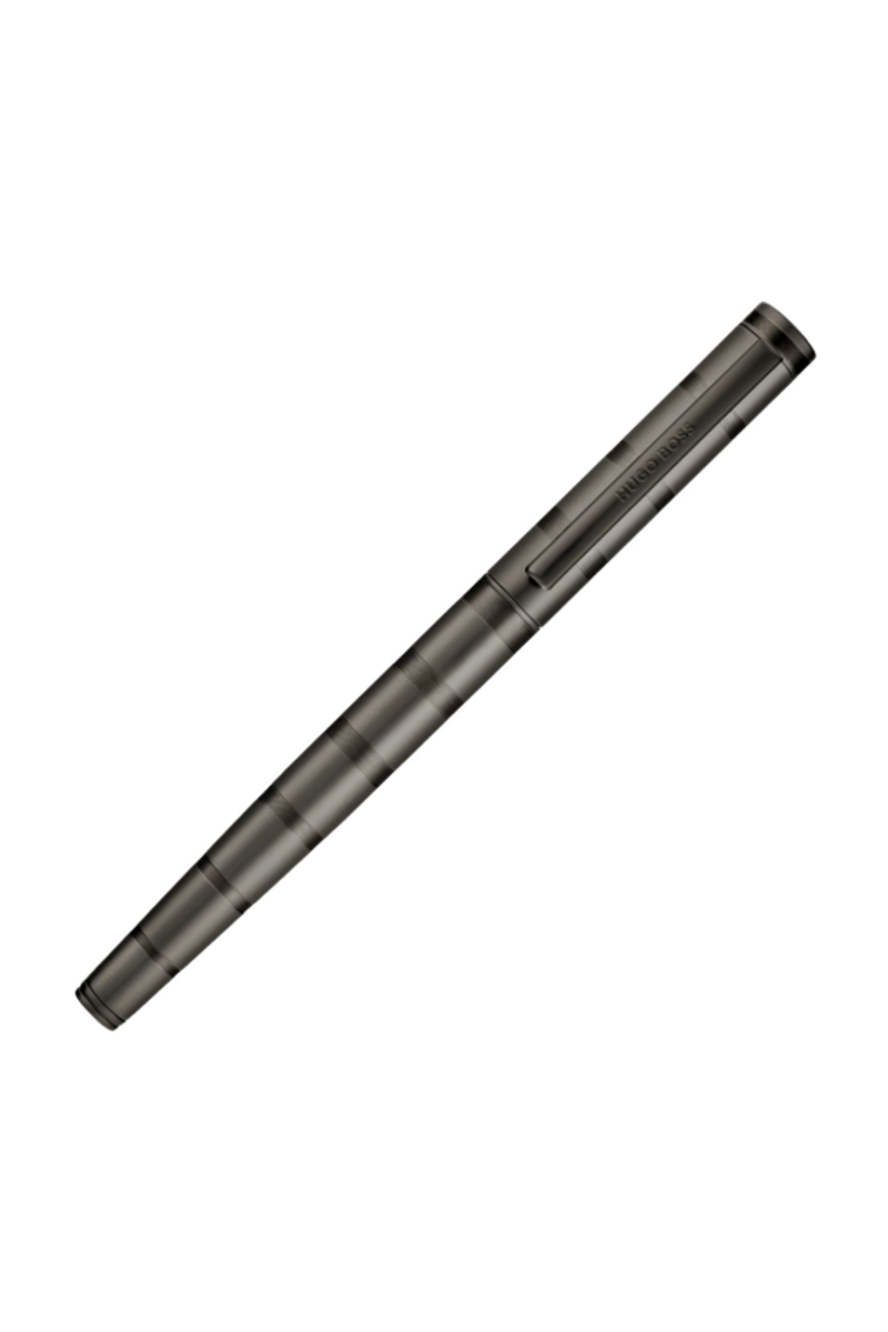 The Loop Stripe pen is built on the top-selling Loop silhouette, offering an understated, luxurious take on this iconic shape. Available in two simple platings, matte gun or shiny chrome, it stands out through an evolving pattern of intricate horizontal stripes so tightly spaced they are barely visible at first glance, creating the impression of contrastive finishes. This subtle texture brings the uneven stripe motif forward while keeping the object minimal and refined.