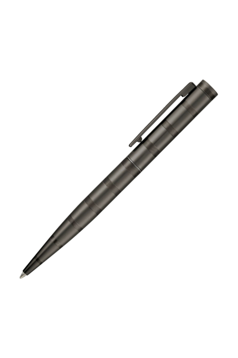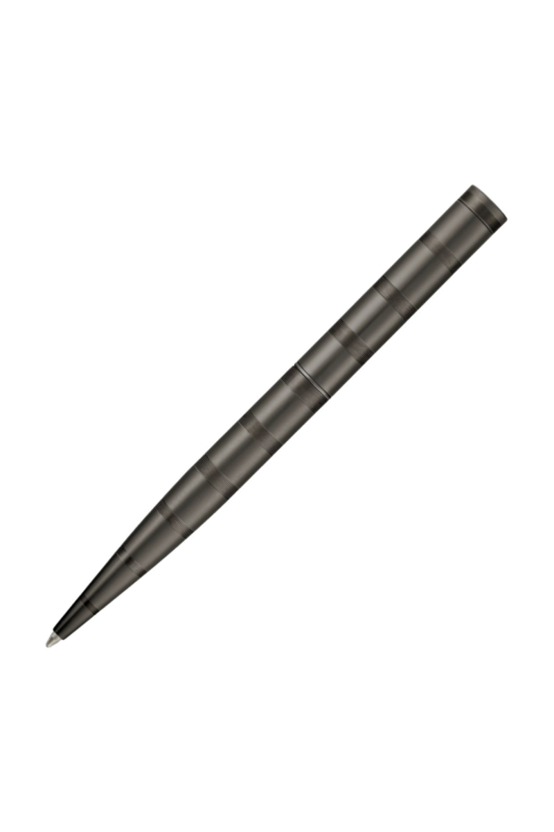 The Loop Stripe pen is built on the top-selling Loop silhouette, offering an understated, luxurious take on this iconic shape. Available in two simple platings, matte gun or shiny chrome, it stands out through an evolving pattern of intricate horizontal stripes so tightly spaced they are barely visible at first glance, creating the impression of contrastive finishes. This subtle texture brings the uneven stripe motif forward while keeping the object minimal and refined.