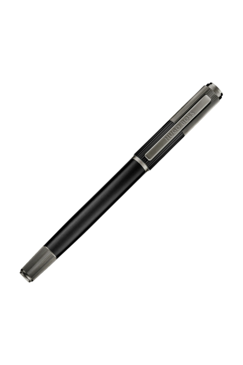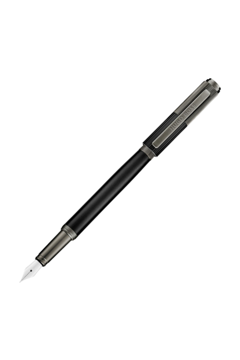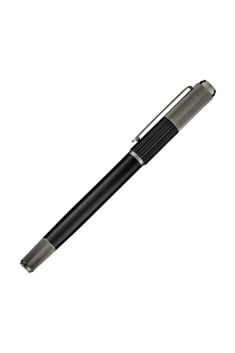 The Striade fountain pen brings a refined twist to a classical silhouette, exploring the interplay of two pinstripe scales arranged across its cap. This contrast lends a subtle industrial spirit to the design, adding texture and character while preserving a minimal, balanced presence as a writing tool. Executed in matte black with engraved gunmetal textures, it feels thoughtfully engineered, with a considered graphical detail that elevates its timeless form.