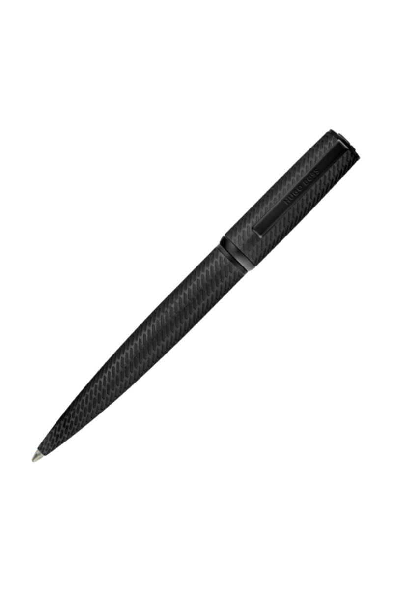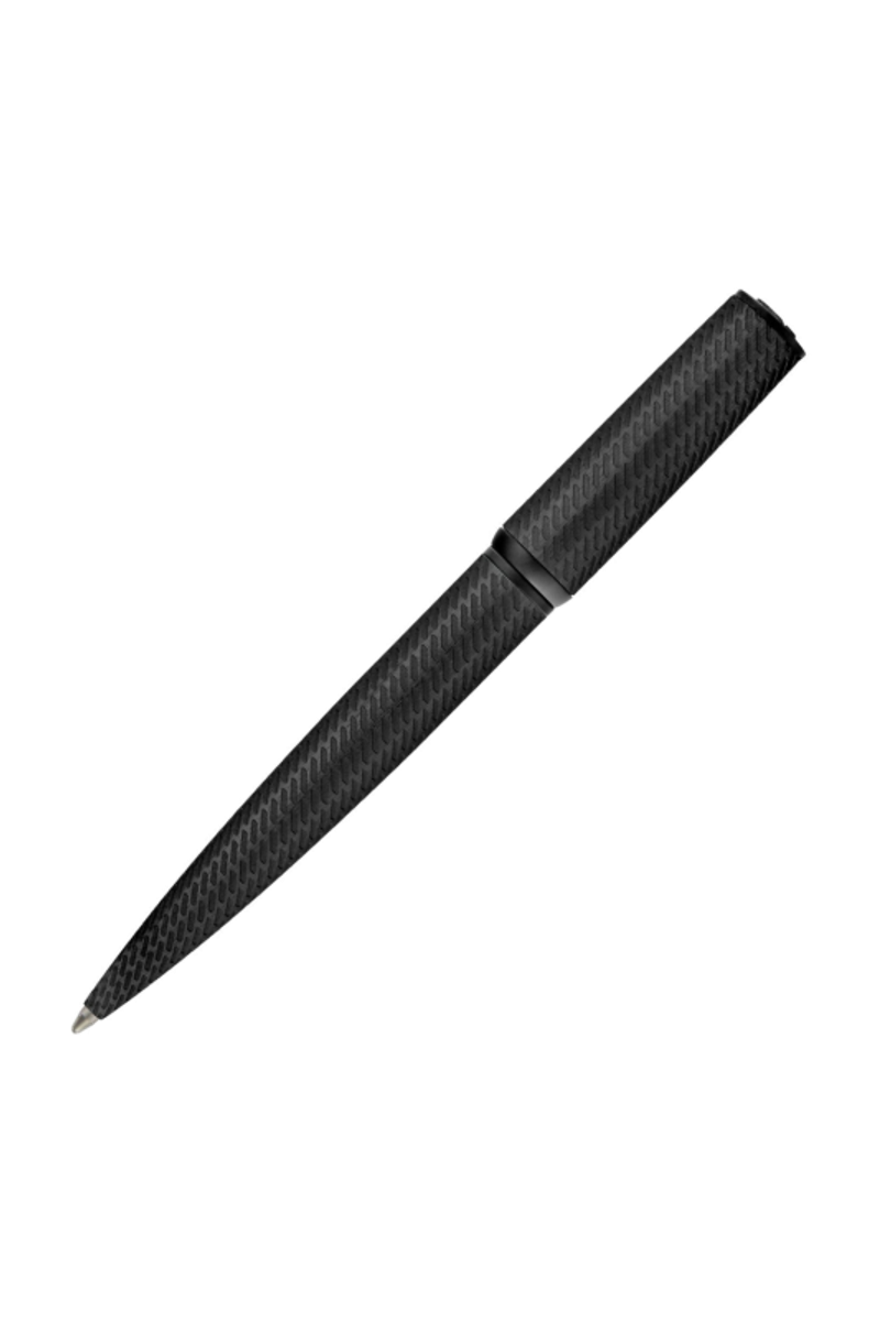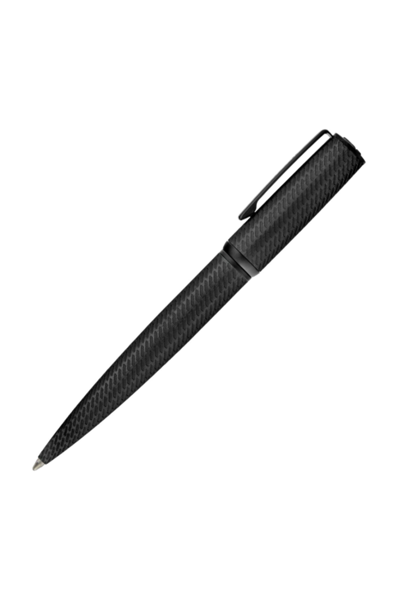 The Arche Pattern pen introduces a modern tapered silhouette, elevated by an innovative brushed-aluminum surface engraved with a pattern inspired by activewear mesh. Designed for a distinctly modern and innovative feel, it is finished with black trims and a Double B signature at the top, while the clip is adorned with the HUGO BOSS logo. Rendered entirely in black, it delivers a sleek, minimal expression with a sharp, contemporary attitude.