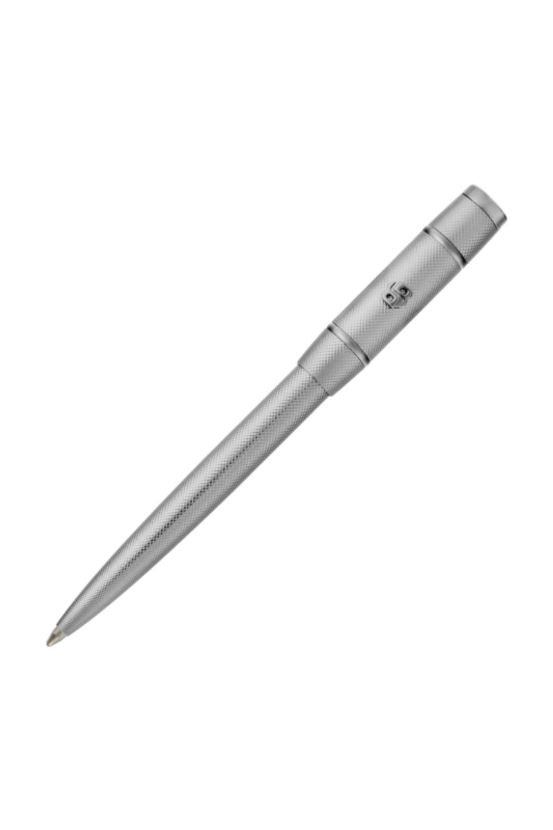 The Rive ballpoint pen unites pen and keyring within a shared, distinctly modern design language, highlighting the new Double B logo through a refined contrast of metal finishes. A tight diamond-cut surface is precisely balanced with crisp, smooth trims and accents, creating a sharp and contemporary signature. Finished entirely in chrome, the integrated 3D Double B logo enhances the sculptural feel. The design is signed with the HUGO BOSS logo at the top, delivering a clean, luminous expression of modern writing.