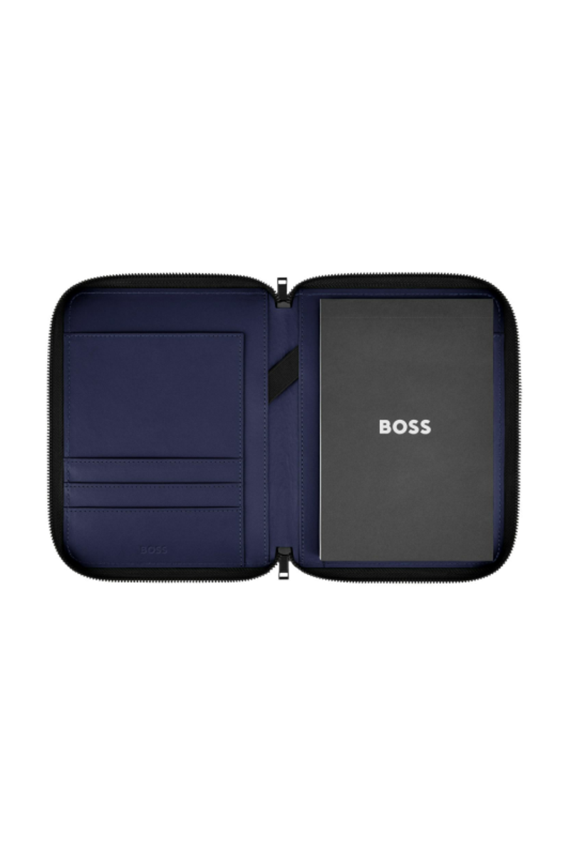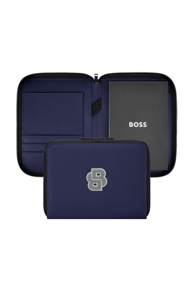 The Varsity folder brings a colorful, graphical twist to a varsity-inspired aesthetic, expressed through an impactful palette of black, camel, burgundy, dark green, and navy. Each version features an oversized, contrastive Double B logo patch highlighted by fresh white outlines, delivering a bold, collegiate touch. Black trims add modernity to the design, while the new BOSS zipper pullers provide a refined and contemporary finish.