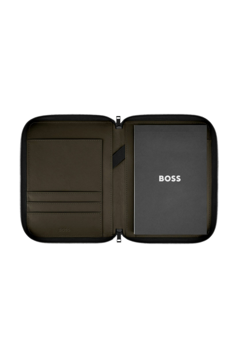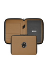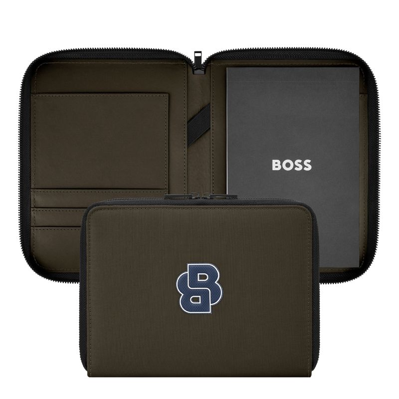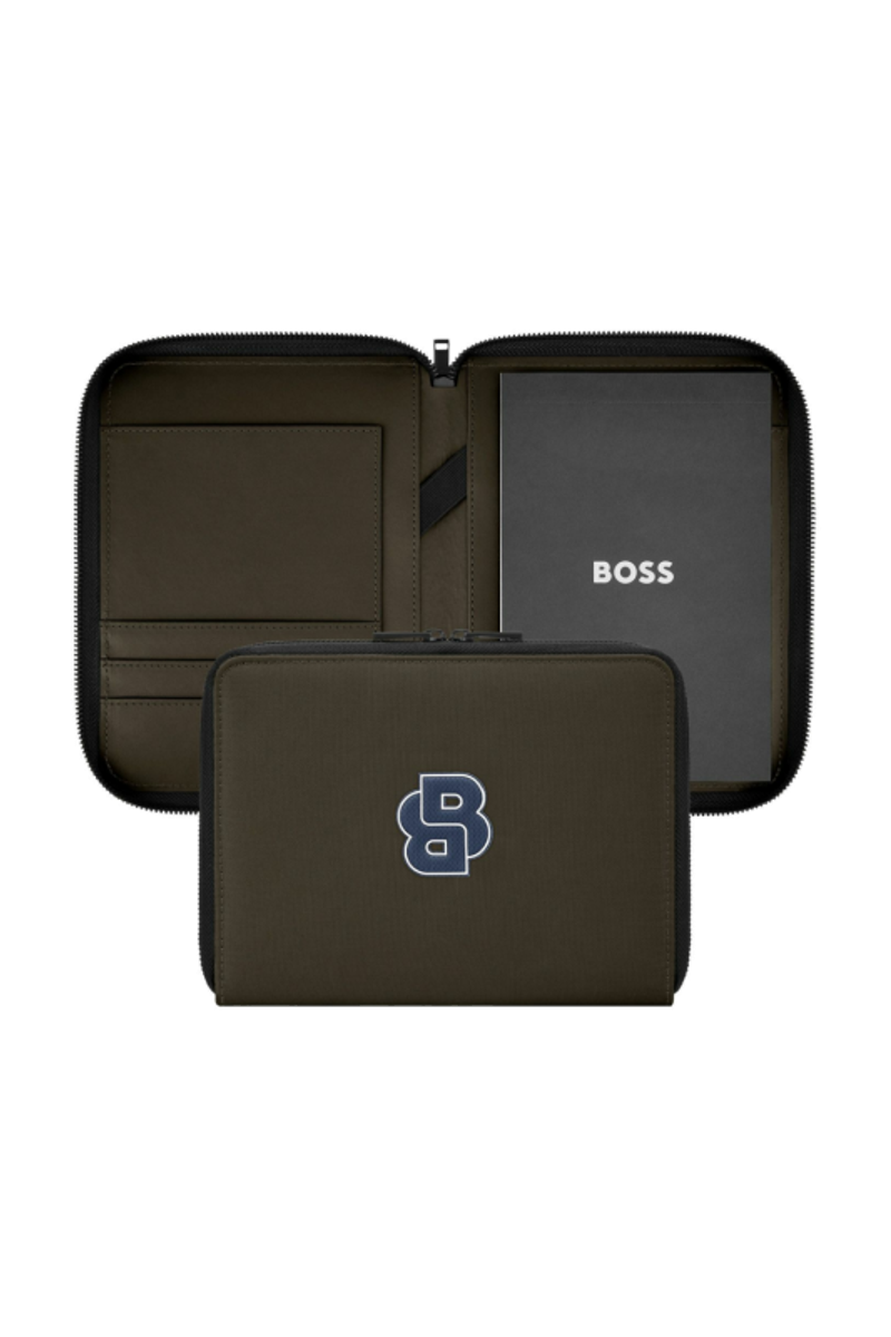 The Varsity folder brings a colorful, graphical twist to a varsity-inspired aesthetic, expressed through an impactful palette of black, camel, burgundy, dark green, and navy. Each version features an oversized, contrastive Double B logo patch highlighted by fresh white outlines, delivering a bold, collegiate touch. Black trims add modernity to the design, while the new BOSS zipper pullers provide a refined and contemporary finish.